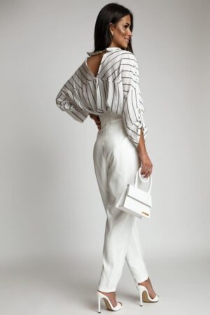 Genialne spodnie Manko, wykonane z wysokiej jakości materiału. Szyku dodaje wysoki, zwężany stan, który optycznie wyszczupla sylwetkę. Po bokach znajdują się pojemne kieszenie. Dodatkowym atutem są ozdobne, złote guziki. Made in Poland.