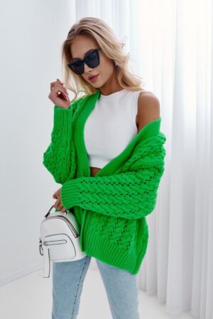 Efektowny, luźny kardigan Bora, wykonany z wysokiej jakości przędzy. Całość zdobi ciekawy, ażurowy wzór w stylu boho. Dodatkowym atutem są długie frędzle na wykończeniach i ponadczasowy kolor. Made in Poland.