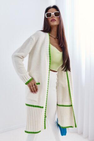Genialny, sweterkowy kardigan Lau to najnowsza propozycja. Bardzo miły w dotyku, wykonany z wysokiej jakości przędzy. Po bokach znajdują się pojemne kieszenie. Charakteru dodają kontrastujące paski na wykończeniach. Dodatkowym atutem jest naszywka z logo producenta na plecach. Made in Poland.