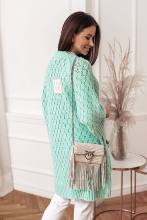 Piękny, kardigan Seli, wykonany z mięsistej, miękkiej w dotyku przędzy. Z powodzeniem zastąpi klasyczny płaszcz. Zapinany na drewniane guziki. Dodatkowym atutem są szerokie kieszenie. Made in Poland.
