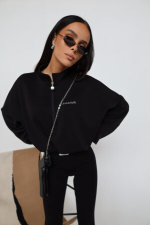 Krótsza bluza z lekko oversize’owymi rękawami i stójką zapinaną na suwak. Wykonana z wyjątkowo miękkiej dzianiny z meszkiem od spodu – otula ciało i daje uczucie ciepła oraz komfortu. Wykończona troczkami i elastycznymi ściągaczami przy rękawach. Z przodu subtelna aplikacja z logo w formie srebrnej wklejki. Must-have do codziennych i wygodnych stylizacji.