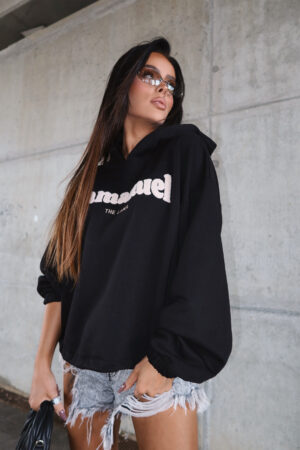 Miękka, przytulna bluza z efektownym logo Lamanuel wykonanym z puszystego szenilu – ten detal od razu przyciąga spojrzenia. Oversize’owy fason zapewnia luz i komfort, a dzięki regulacji w talii na troczek możesz dopasować ją do swojej sylwetki – luźno, dopasowanie, jak lubisz. Must-have w szafie każdej miłośniczki stylu streetwear z twistem premium.