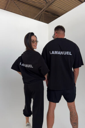 Klasyczny T-shirt LAMANUEL w męskiej wersji właśnie dołącza do kolekcji. Oversize’owy krój i wyraziste hafty z przodu oraz na plecach nadają mu charakteru, który świetnie wpisuje się w miejski, codzienny styl.