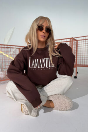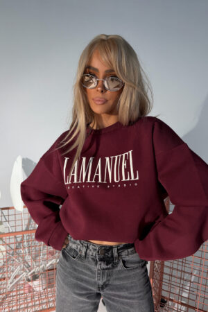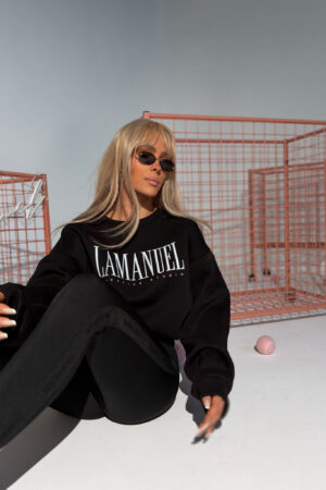 Krój oparty na klasycznej formie z delikatnym efektem crop. Mięsista dzianina drapana – miękka od spodu, trzyma objętość bez uczucia ciężkości. Z przodu przestrzenne logo z gumy – pod palcami wyczuwalna faktura, na żywo robi wrażenie. Dół regulowany – możesz ją nosić luźno albo ściągnąć do formy bombki. Rękawy szerokie, wykończone elastycznym ściągaczem. Prosty model, który działa przez detal.
