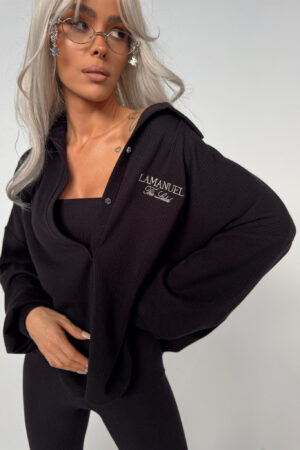 Bluza z prążkowanej dzianiny, która wygląda jak totalny chill, ale ma w sobie coś więcej. Rozpinana przy dekolcie, z obszernym kapturem i luźnym krojem – stworzona do warstw, do luzu, do noszenia “niby od niechcenia”, ale z efektem. Haft z logo na piersi robi tu całą robotę – subtelny, ale przyciąga oko. To ten typ bluzy, którą wrzucasz na siebie i nie musisz już nic kombinować. Styl sam się broni.