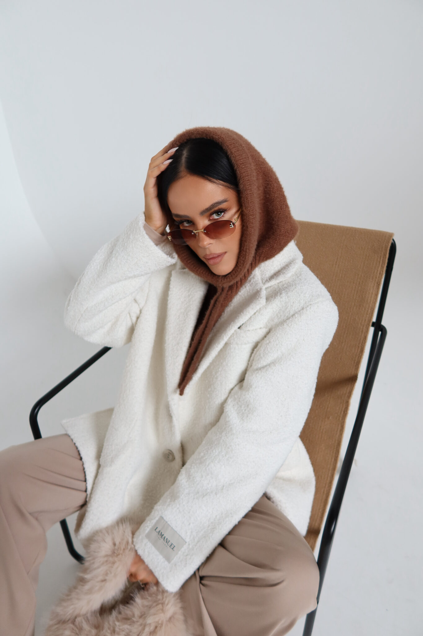 Miękka, dzianinowa balaclava o klasycznym kroju z wiązaniem pod brodą. Elastyczna, przyjemna w dotyku, dobrze dopasowuje się do głowy. Ciepła i stylowa alternatywa dla czapki – idealna do płaszczy, kurtek i marynarek. Wykończona naszywką z logo z tyłu.
