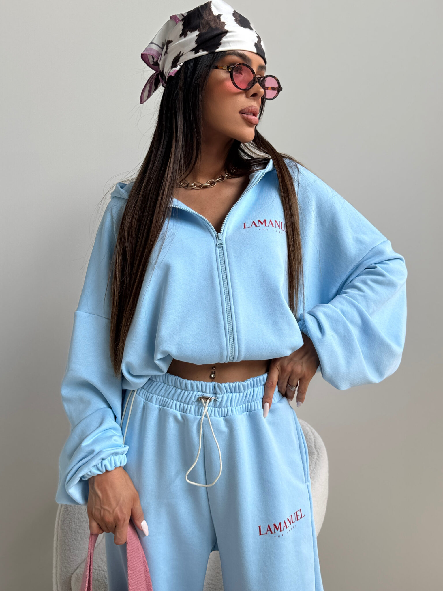 Bluza o luźnym kroju zapinana na suwak z kapturem i wszytym ściągaczem na dole, który umożliwia regulację szerokości i podkreślenie talii. Rękawy szerokie, zakończone delikatną gumką. Na piersi oraz na plecach znajduje się wyraziste logo LAMANUEL, które nadaje całości charakteru. Model wykonany z miękkiej, przyjemnej w dotyku dzianiny, idealny na co dzień i w podróży. Połącz je ze spodniami CLOUDY, aby mieć stylizację w całości. Bluza pasuje od rozmiaru XS do XL.