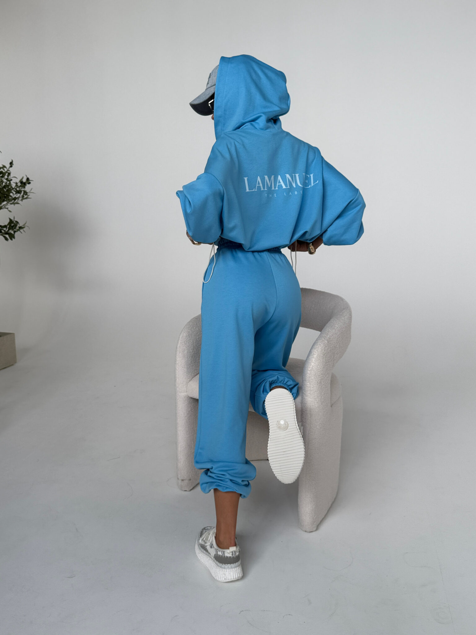 Bluza o luźnym kroju zapinana na suwak z kapturem i wszytym ściągaczem na dole, który umożliwia regulację szerokości i podkreślenie talii. Rękawy szerokie, zakończone delikatną gumką. Na piersi oraz na plecach znajduje się wyraziste logo LAMANUEL, które nadaje całości charakteru. Model wykonany z miękkiej, przyjemnej w dotyku dzianiny, idealny na co dzień i w podróży. Połącz je ze spodniami CLOUDY, aby mieć stylizację w całości. Bluza pasuje od rozmiaru XS do XL.