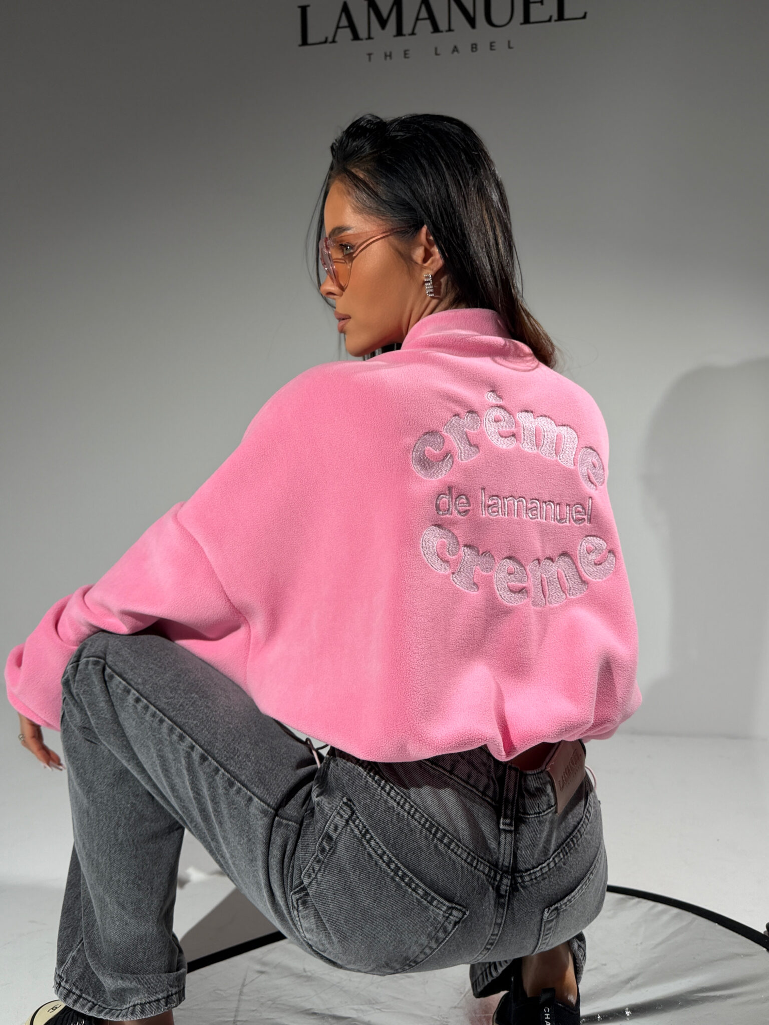 Nasz bestsellerowy krój powraca w nowej odsłonie – tym razem z haftowanym hasłem crème de lamanuel crème, które mówi samo za siebie. Polarowa bluza o oversize’owym kroju z półgolfem i krótkim suwakiem to kwintesencja luzu z paryskim twistem. Miękka, puszysta struktura materiału daje uczucie komfortu i otulenia, a regulowany dół pozwala dopasować fason do sylwetki – noś luźno albo ściągnij dla efektu crop. Ikoniczna, rozpoznawalna, wygodna – nie tylko dla fanek marki, ale dla wszystkich, które wiedzą, że less is more, a styl tkwi w detalach.