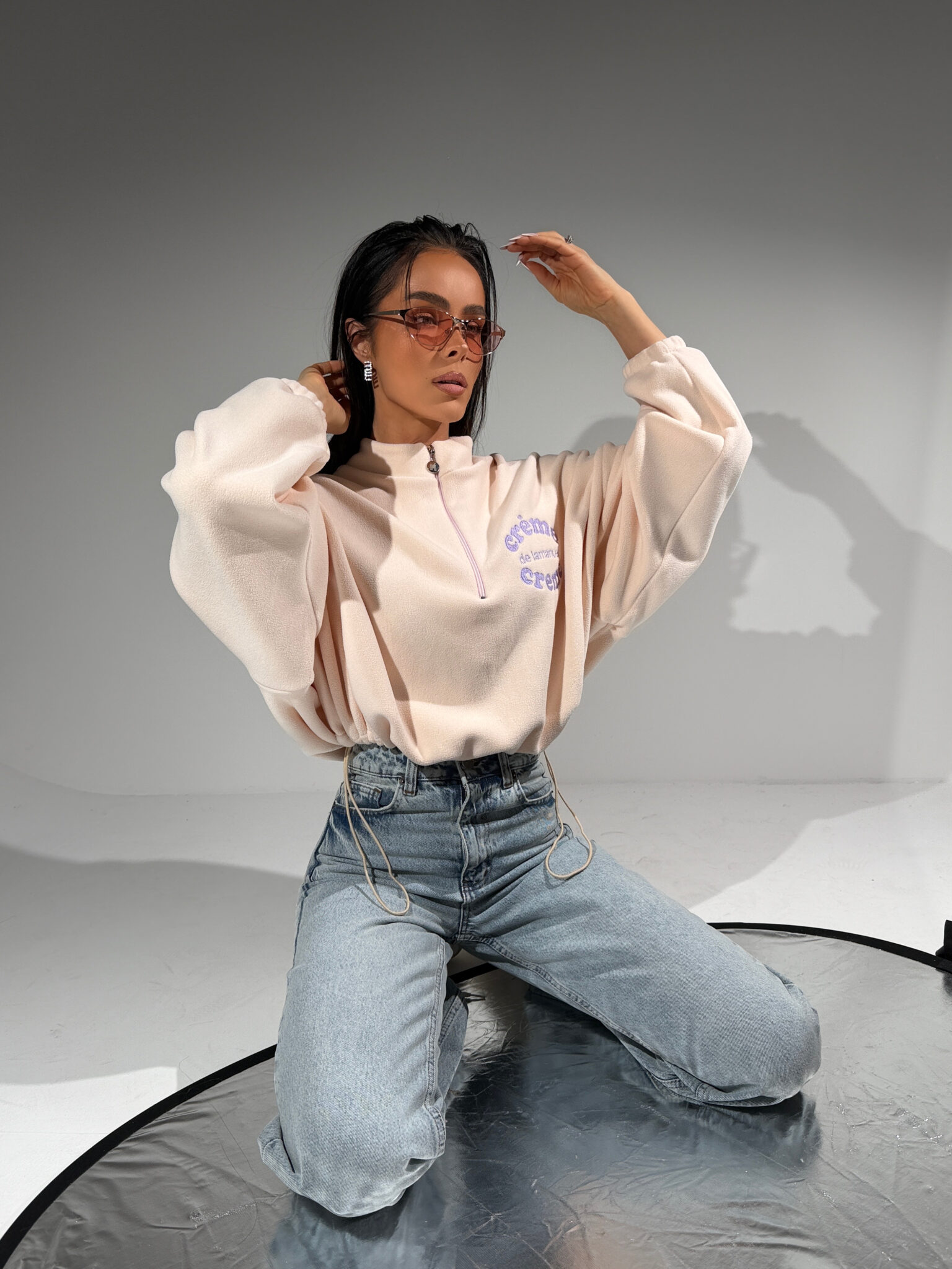 Nasz bestsellerowy krój powraca w nowej odsłonie – tym razem z haftowanym hasłem crème de lamanuel crème, które mówi samo za siebie. Polarowa bluza o oversize’owym kroju z półgolfem i krótkim suwakiem to kwintesencja luzu z paryskim twistem. Miękka, puszysta struktura materiału daje uczucie komfortu i otulenia, a regulowany dół pozwala dopasować fason do sylwetki – noś luźno albo ściągnij dla efektu crop. Ikoniczna, rozpoznawalna, wygodna – nie tylko dla fanek marki, ale dla wszystkich, które wiedzą, że less is more, a styl tkwi w detalach.