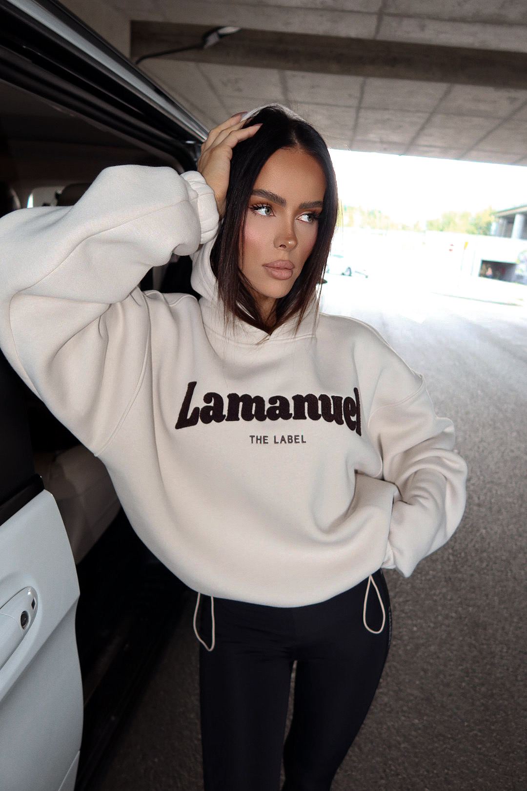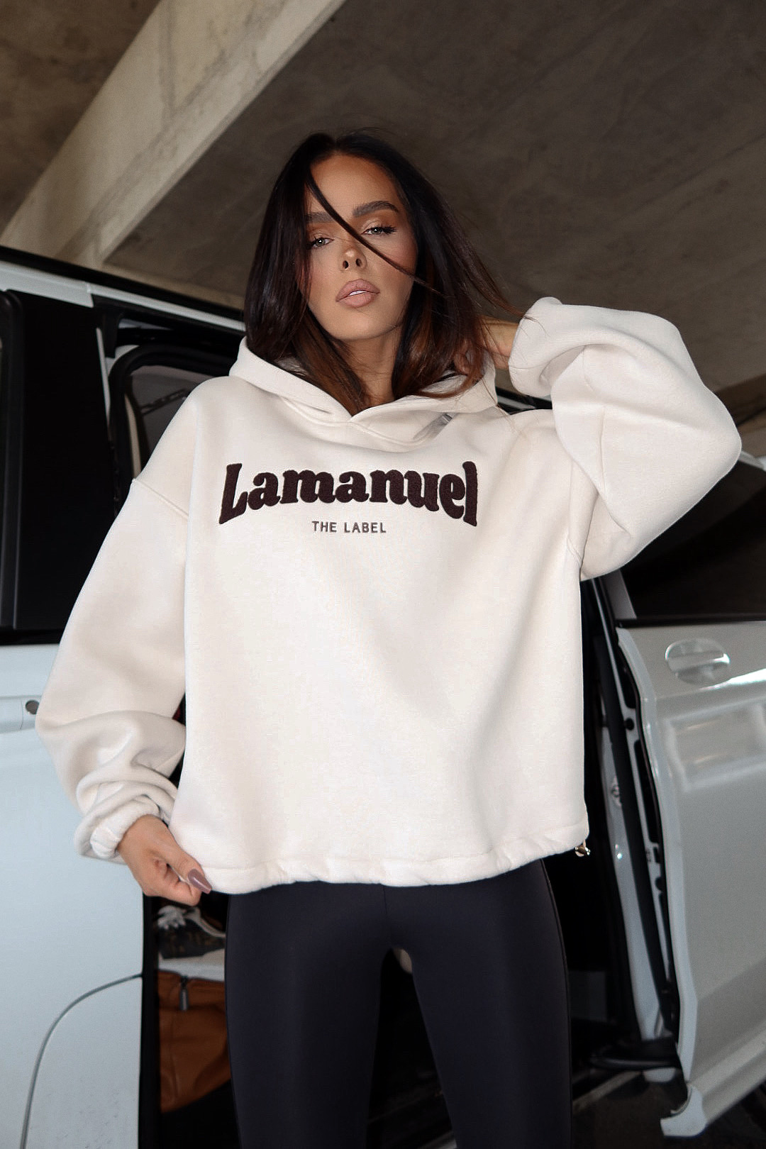 Miękka, przytulna bluza z efektownym logo Lamanuel wykonanym z puszystego szenilu – ten detal od razu przyciąga spojrzenia. Oversize’owy fason zapewnia luz i komfort, a dzięki regulacji w talii na troczek możesz dopasować ją do swojej sylwetki – luźno, dopasowanie, jak lubisz. Must-have w szafie każdej miłośniczki stylu streetwear z twistem premium.