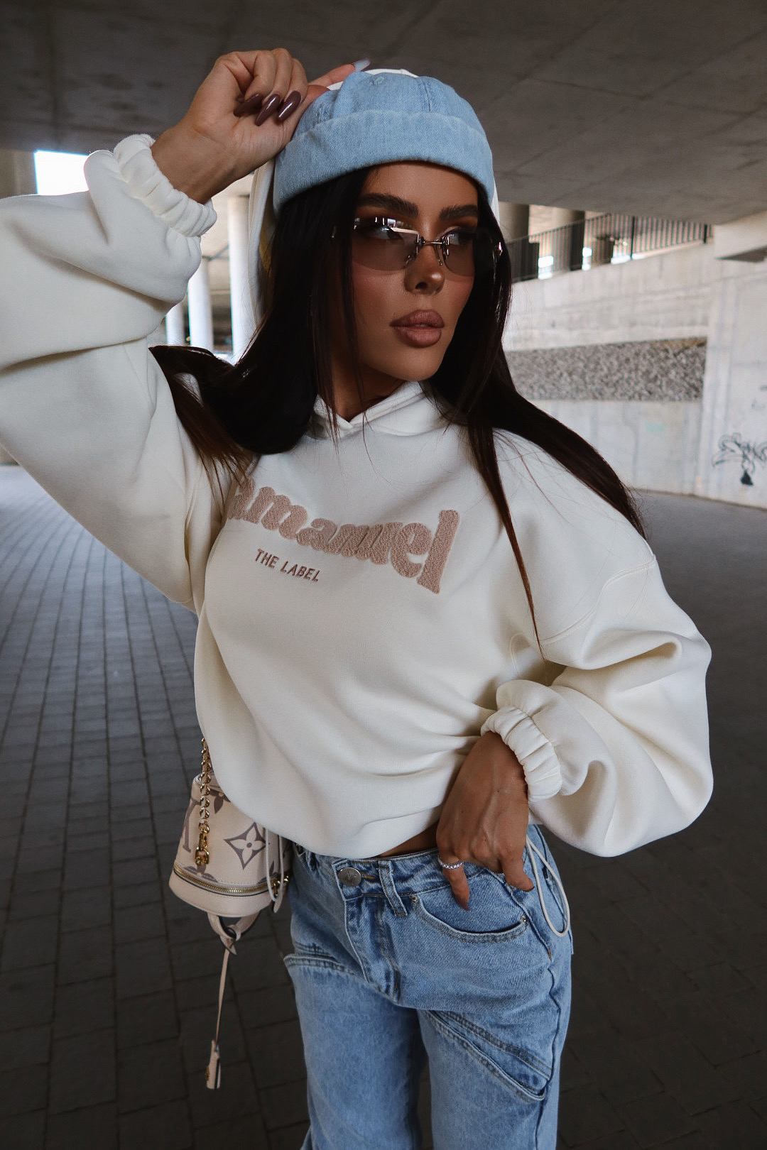 Miękka, przytulna bluza z efektownym logo Lamanuel wykonanym z puszystego szenilu – ten detal od razu przyciąga spojrzenia. Oversize’owy fason zapewnia luz i komfort, a dzięki regulacji w talii na troczek możesz dopasować ją do swojej sylwetki – luźno, dopasowanie, jak lubisz. Must-have w szafie każdej miłośniczki stylu streetwear z twistem premium.