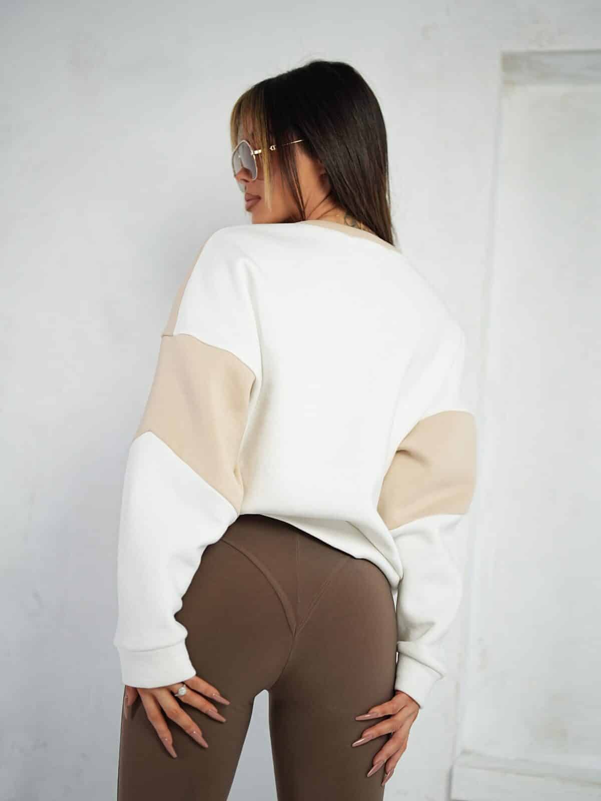 Odkryj doskonałą równowagę między stylem, a komfortem w naszej damskiej bluzie dwukolorowej bez kaptura. Dwie harmonijnie zestawione barwy nadają bluzie charakteru, tworząc efektowny kontrast, który przyciąga spojrzenia. Delikatne przeszycia i dopasowany krój dodają bluzie finezji, a jednocześnie pozostawiają miejsce na swobodę ruchu. Zainwestuj w styl i wygodę jednocześnie! Made in Poland .