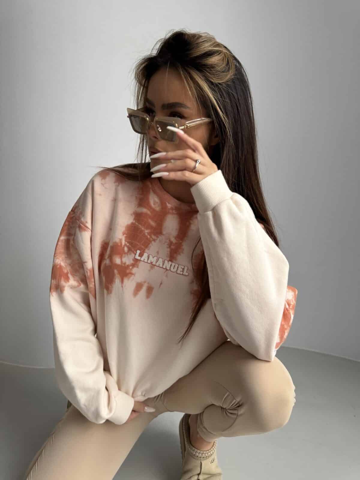 Wprowadź do swojej kolekcji ubrań unikalną bluzę handmade. Każda bluza jest wyjątkowa, pełna indywidualności i kreatywności, co sprawia, że noszenie jej staje się wyjątkowym doświadczeniem. Efekt tie dye nadaje bluzie niepowtarzalnego, artystycznego wyglądu, tworząc barwne plamy i wzory, które przypominają dzieło sztuki. Rękaw zakończony ściągaczem, dopasowany do ciała, pozwala cieszyć się komfortem noszenia. Dodatkowo, każda bluza handmade posiada nie tylko charakterystyczny dla tie dye design, ale także odzwierciedla unikalność i staranność wykonania.