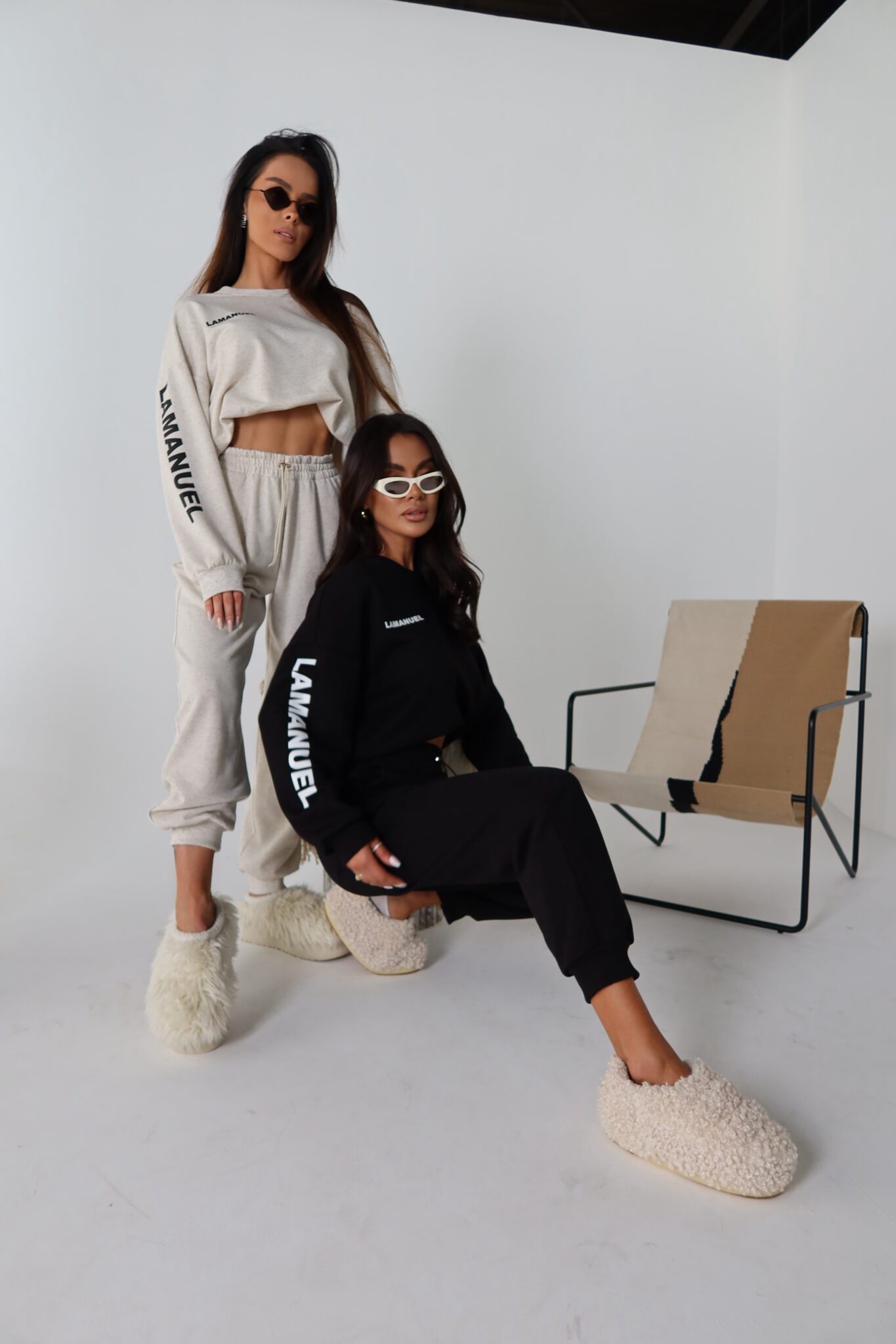 Bluza o luźnym, lekko oversize kroju z dzianiny pętelkowej o wysokiej gramaturze. Miękka i wygodna, ze ściągaczami przy rękawach i dole. Logo LAMANUEL na piersi oraz pionowe nadruki na rękawach . Świetnie wygląda solo i w komplecie o tej samej nazwie .