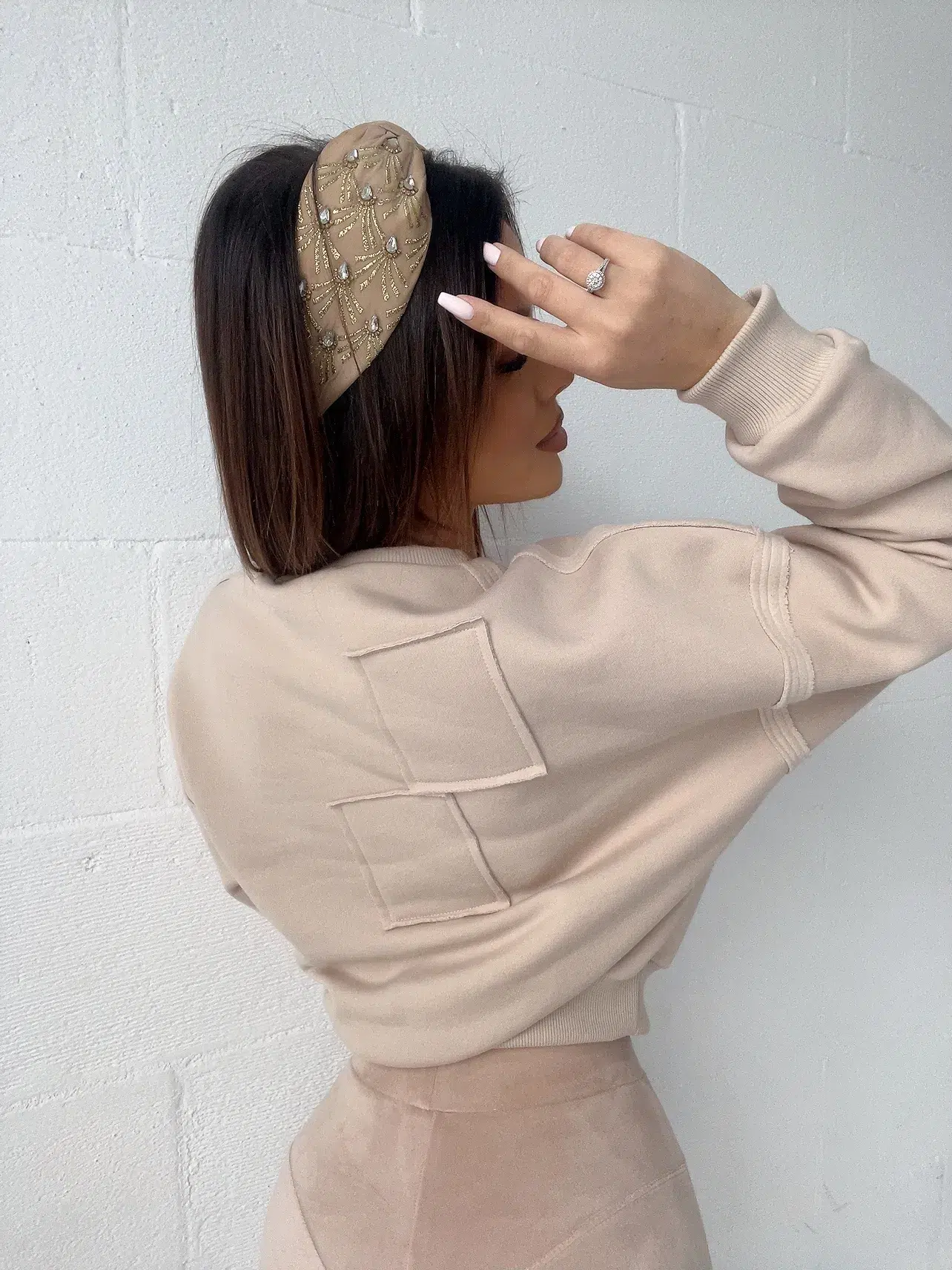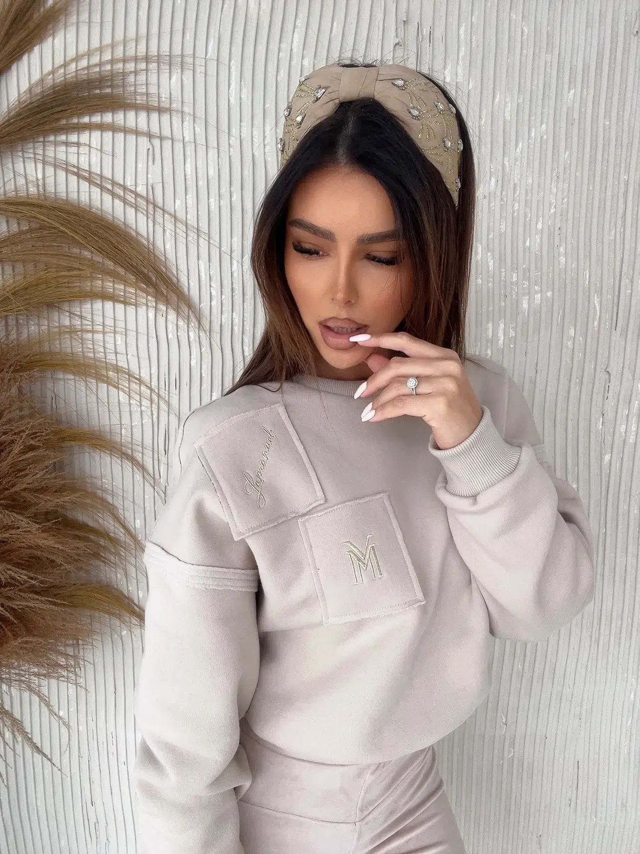 Bluza damska bez kaptura. Oryginalny model z ozdobnymi naszywkami, które znajdują się zarówno z przodu jak i z tyłu. Wykonana z miękkiej dzianiny, która w wewnętrznej stornie posiada przyjemnego w dotyku misia. Posiada haftowane logo marki. Model ten sprawdzi się przy stylizacjach o każdej porze roku – będzie idealną bazą wielu codziennych stylizacji. Made in Poland.