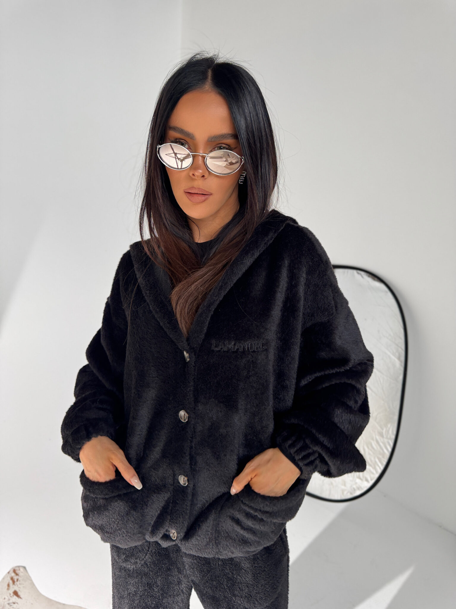 Bluza o oversize’owym kroju, wykonana z ultra miękkiego, puszystego materiału przypominającego misia. Otula jak koc i zapewnia maksymalne ciepło nawet w największy chłód. Luźny fason z obszernym kapturem i dużymi kieszeniami to połączenie stylu i wygody. Zapinana na guziki, wykończona haftowanym logo. Sprawdzi się idealnie podczas zimowych spacerów, wyjazdów w góry i leniwych dni w domu. Możesz ją zestawić z pasującymi spodniami – to komplet stworzony na śnieżne przygody i mroźne poranki.