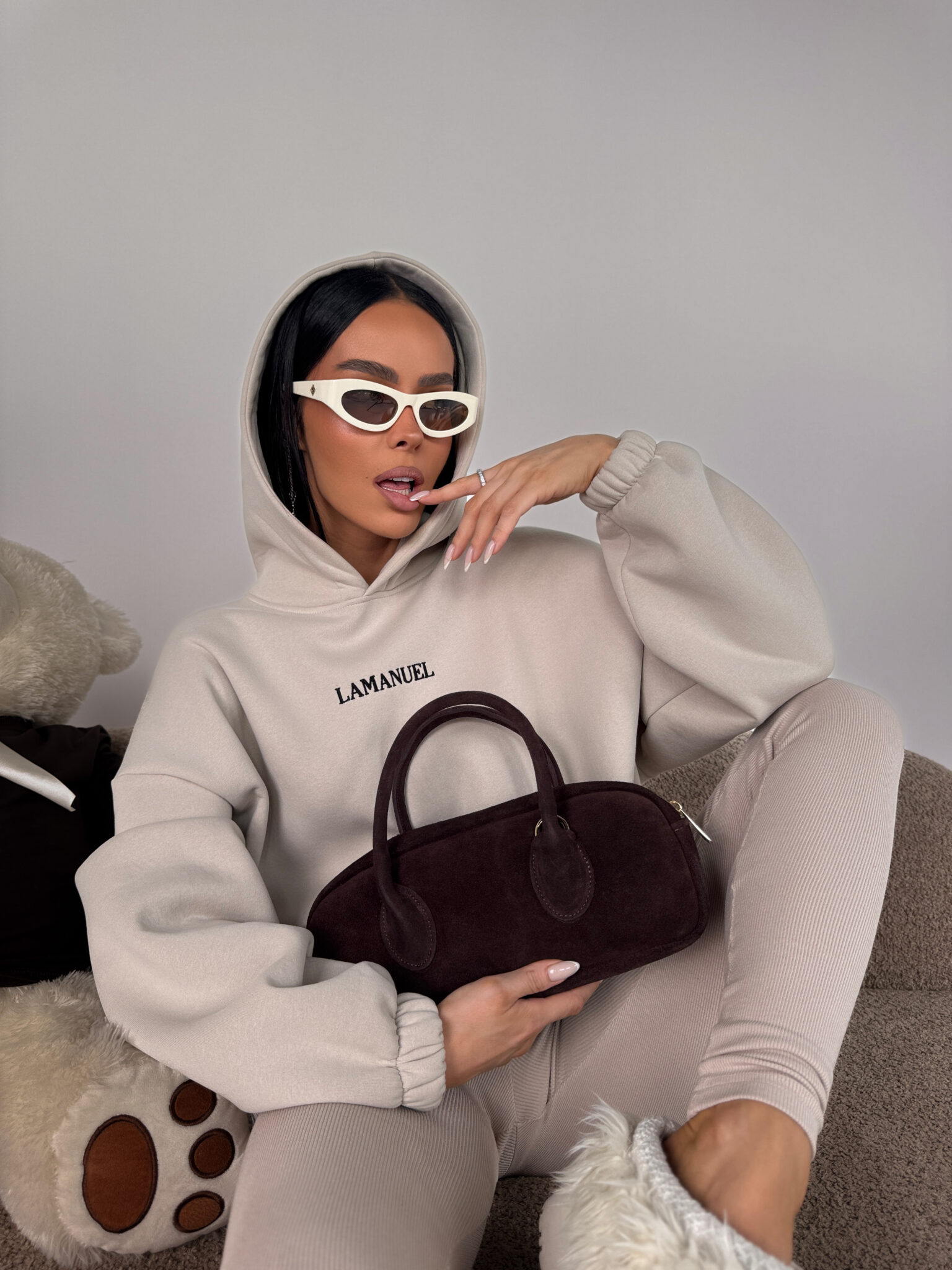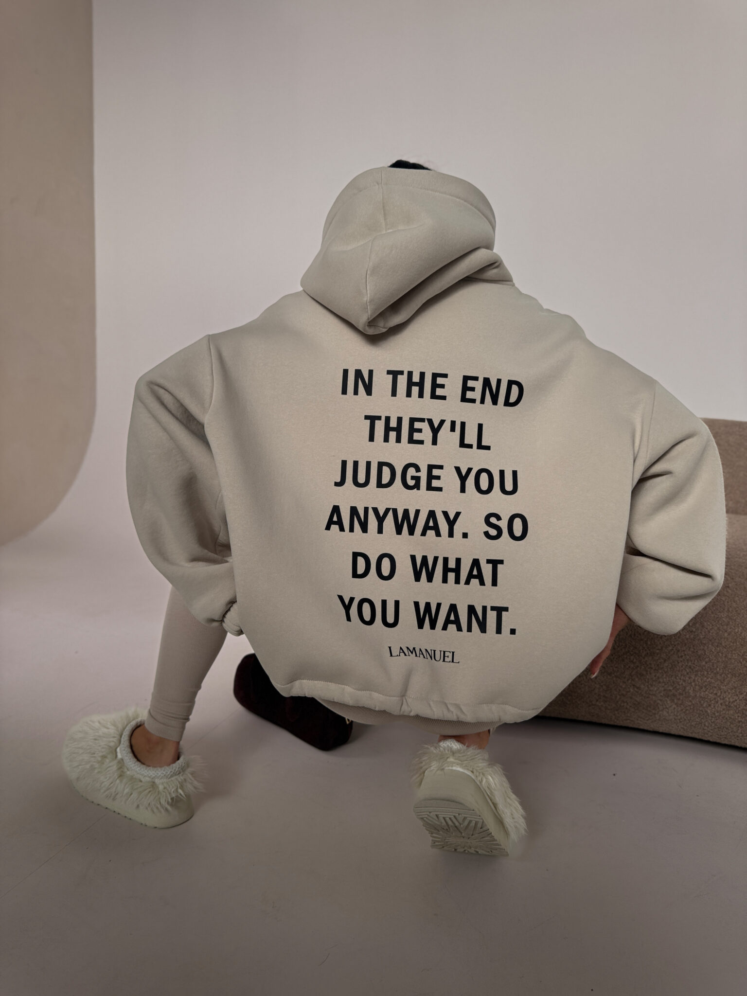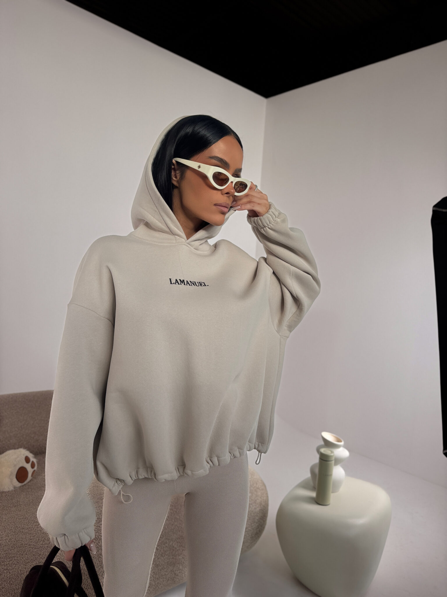 Bluza z grubszej, drapanej dzianiny daje totalny komfort i porządne wykończenie, a klasyczna długość z regulacją na dole pozwala nosić ją tak, jak lubisz — luźno, prosto albo lekko podciągniętą, z przodu logo, z tyłu konkretny tekst, który mówi wszystko za Ciebie.tone,lamanuel,bluza