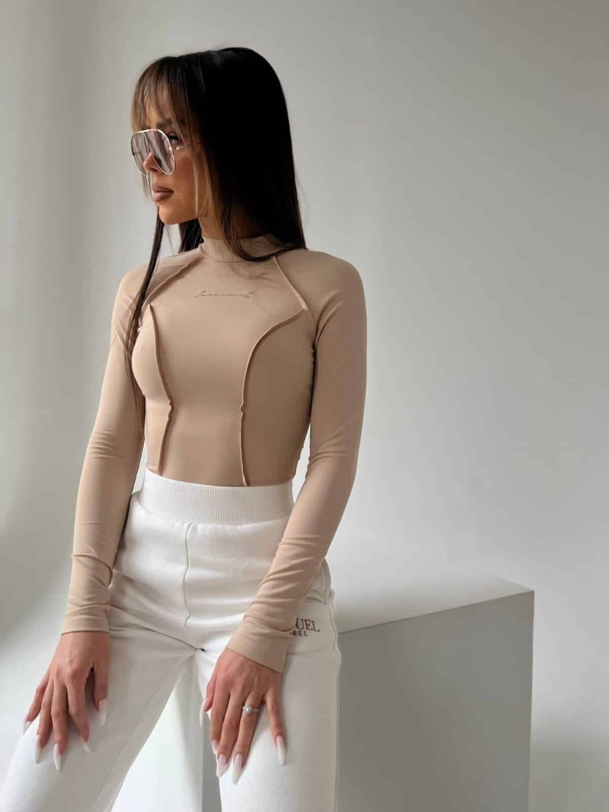 Nasze nowe body klasyczne z długim rękawem podkreśli Twoją sylwetkę. Elastyczny materiał doskonale dopasowuje się do kształtu ciała, zapewniając swobodę ruchu i komfort noszenia przez cały dzień. Posiada efektowne przeszycia oraz logo marki na przodzie. Zapinane na haftki. Made in Poland .