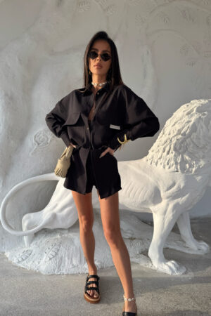 Dopasowane body wykonane z miękkiej, elastycznej wiskozy, która delikatnie przylega do ciała i pięknie podkreśla sylwetkę. Fason z długim rękawem zakończonym marszczeniem oraz zabudowanym dekoltem dodaje elegancji i minimalizmu. Na przodzie haftowane logo lamanuel. Dół na stringi – niewidoczny pod ubraniem, komfortowy i praktyczny w noszeniu. Idealna baza do stylizacji codziennych i bardziej wyjściowych – body, które zrobi robotę zawsze i wszędzie.