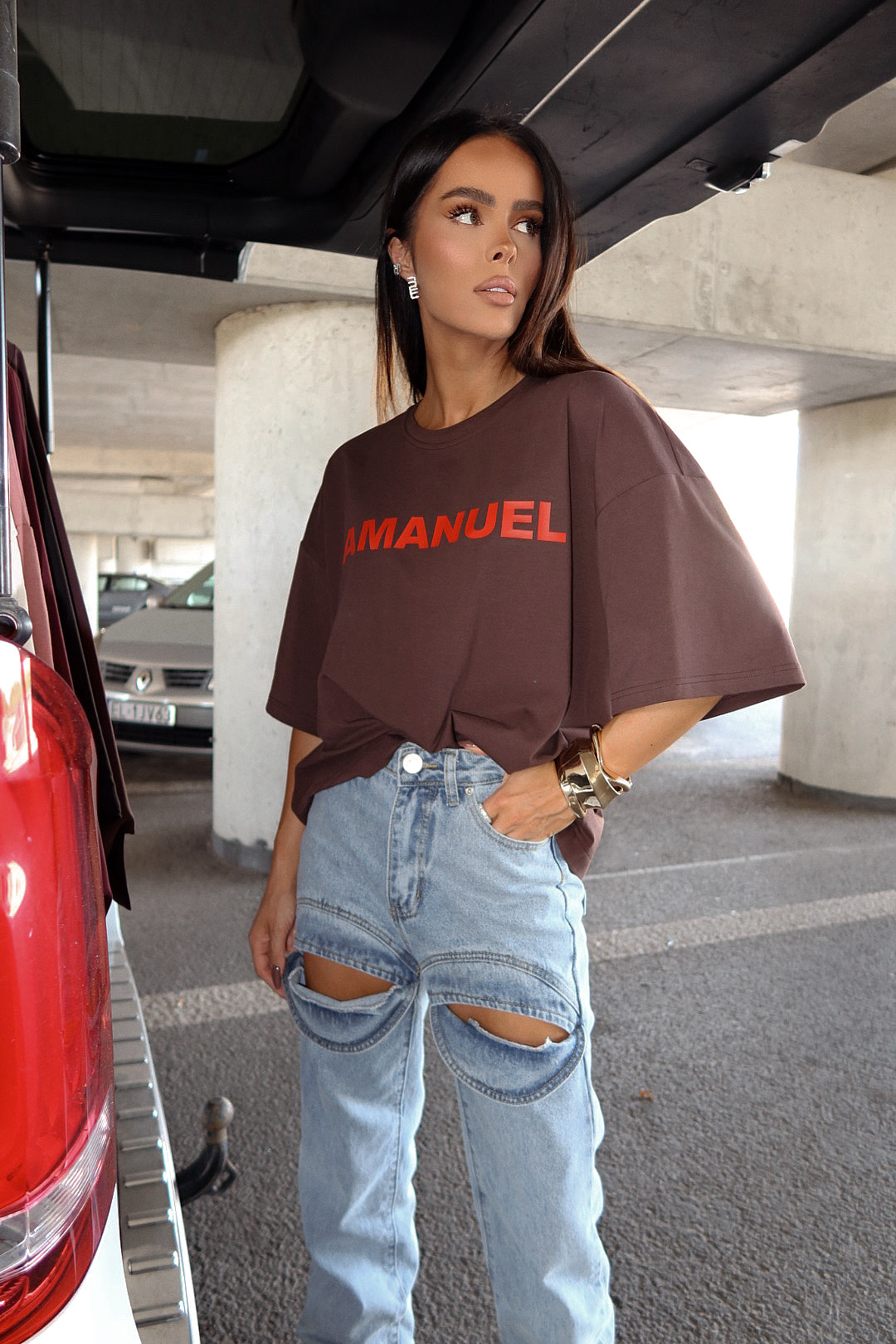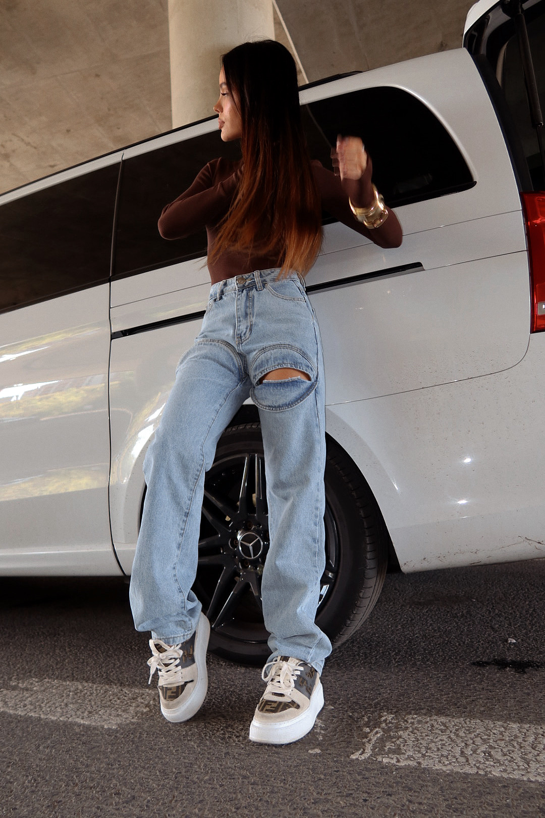 To nie są zwykłe jeansy — to manifest stylu. Klasyczny fason z wysokim stanem i luźną nogawką zyskał zupełnie nowy wymiar dzięki unikalnemu przeszyciu na udzie. To nie ozdoba, to funkcjonalny detal – wystarczy lekko odchylić materiał, a odsłania się zadziorne wycięcie. Niby klasyk, ale z ukrytą niespodzianką. Denim dla tych, którzy nie boją się mody z charakterem.