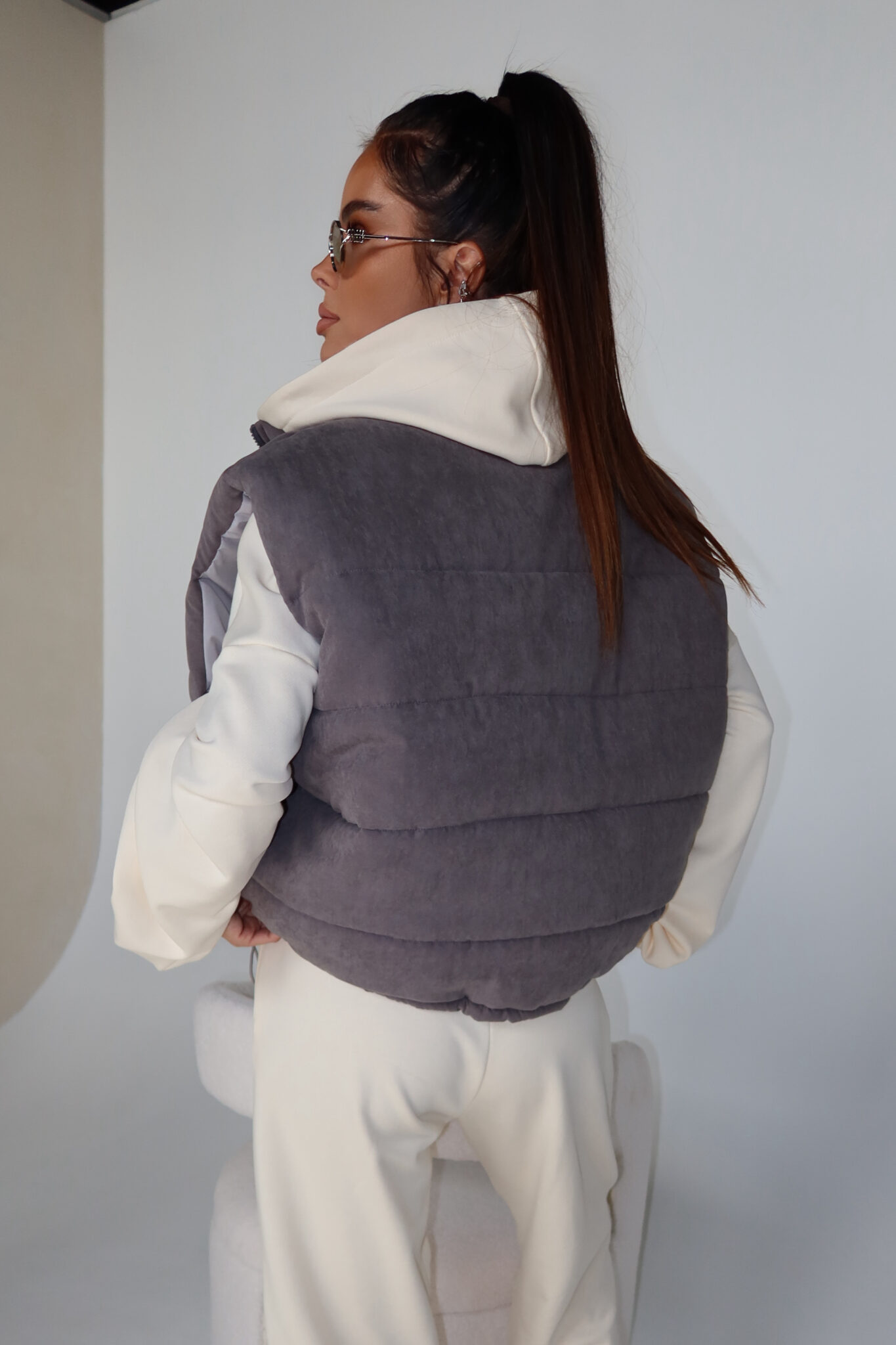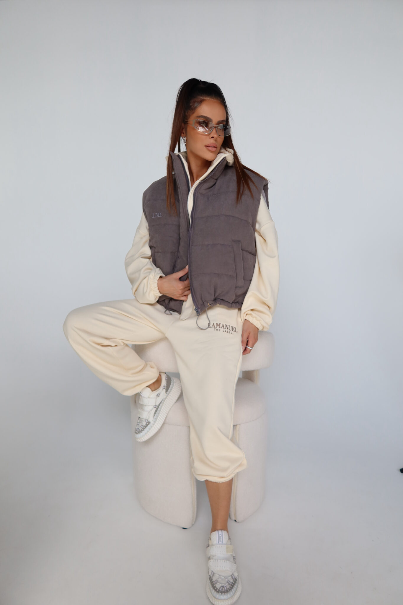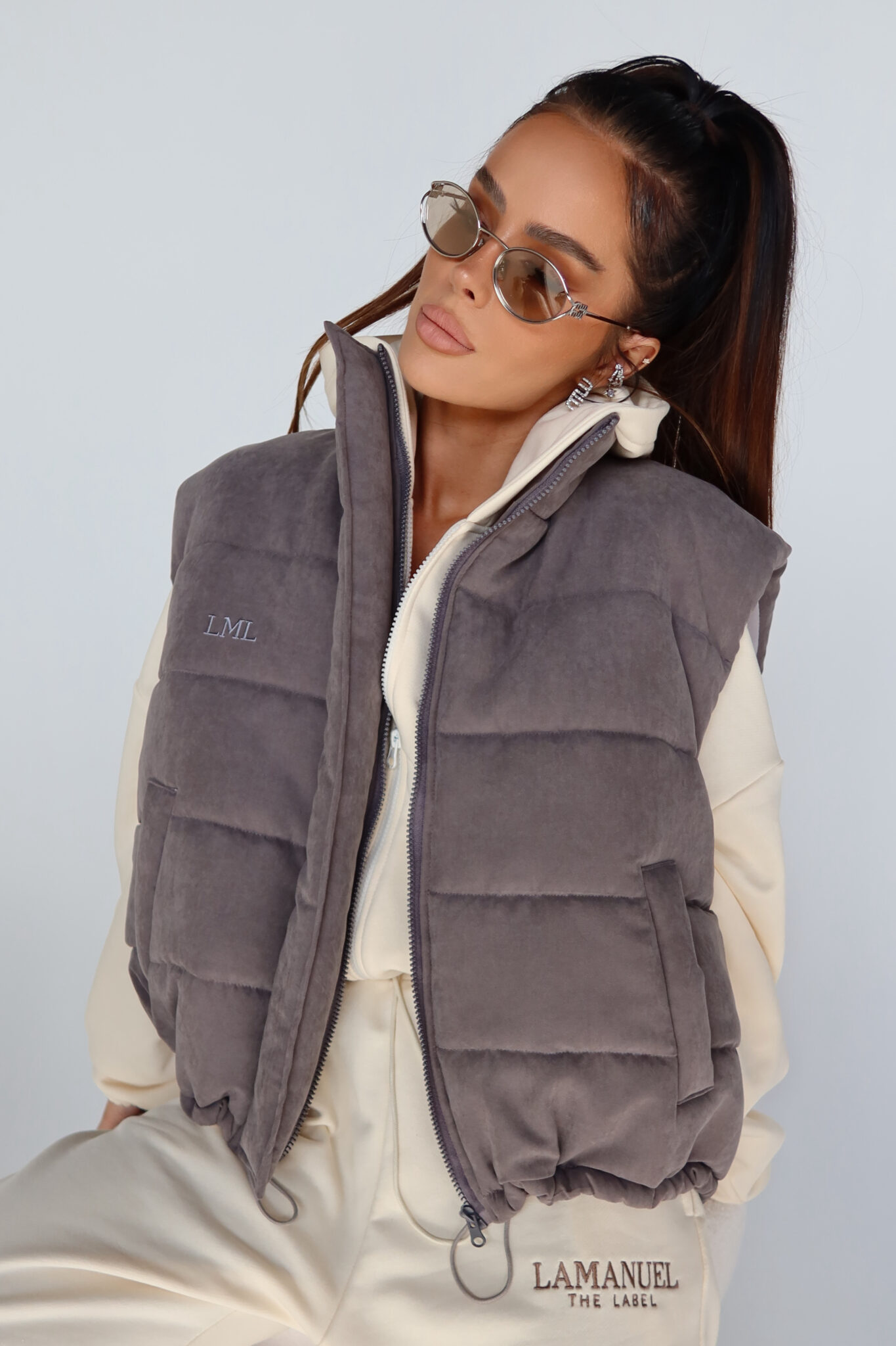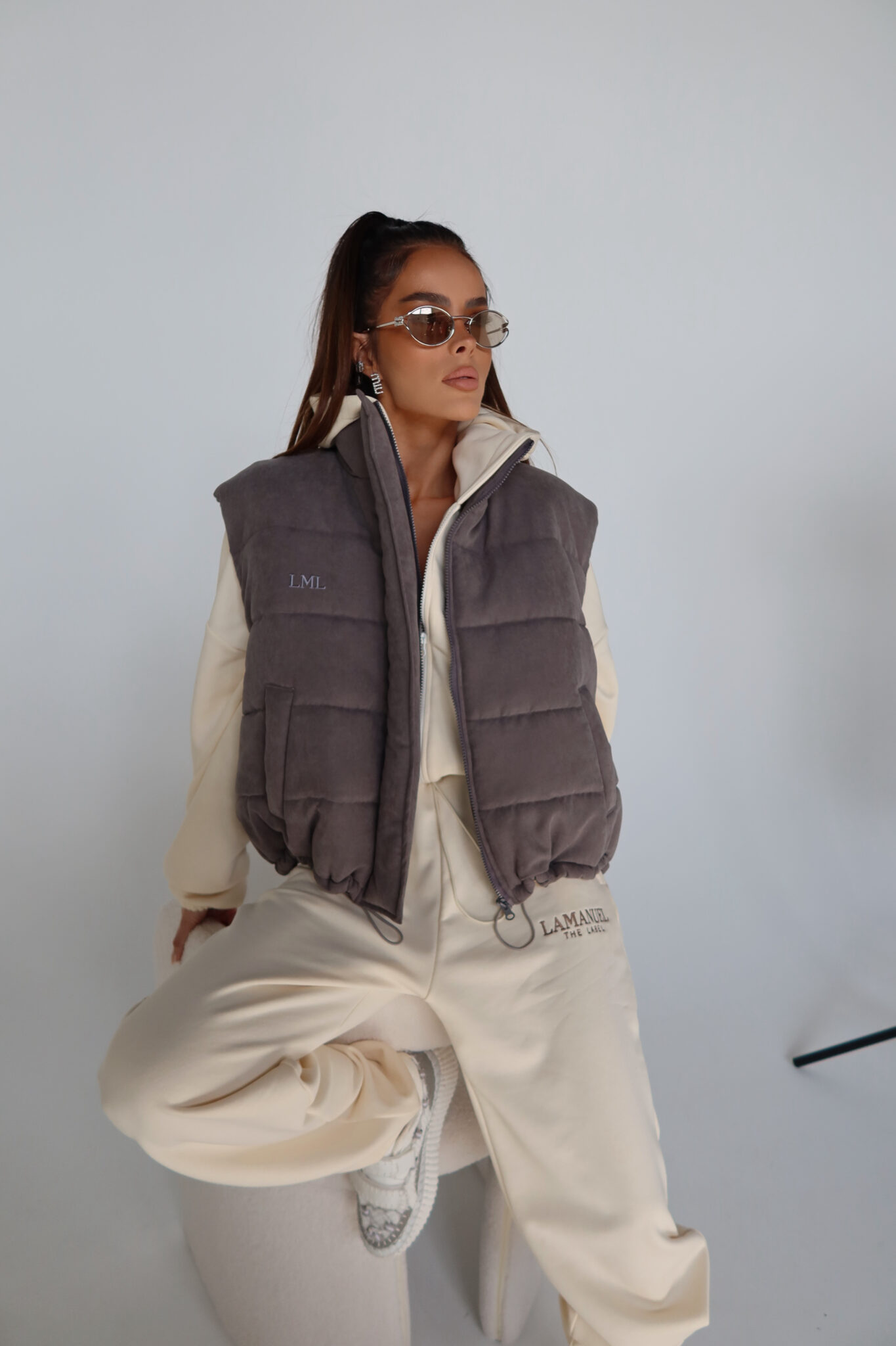 Pikowany bezrękawnik o przeskalowanym fasonie, który robi całą stylizację. Wyraźnie zabudowany kołnierz typu stójka dodaje charakteru i chroni przed chłodem. Model zapinany na zamek, z bocznymi kieszeniami i haftowanym logo LML z przodu. Wypełnienie nadaje mu miękkości i objętości, a zaokrąglony dół z regulacją pozwala dopasować długość i kształt do sylwetki. Idealny do noszenia na dopasowane bazy – tworzy mocny, streetowy look. Pasuje od rozmiaru XS do XL.