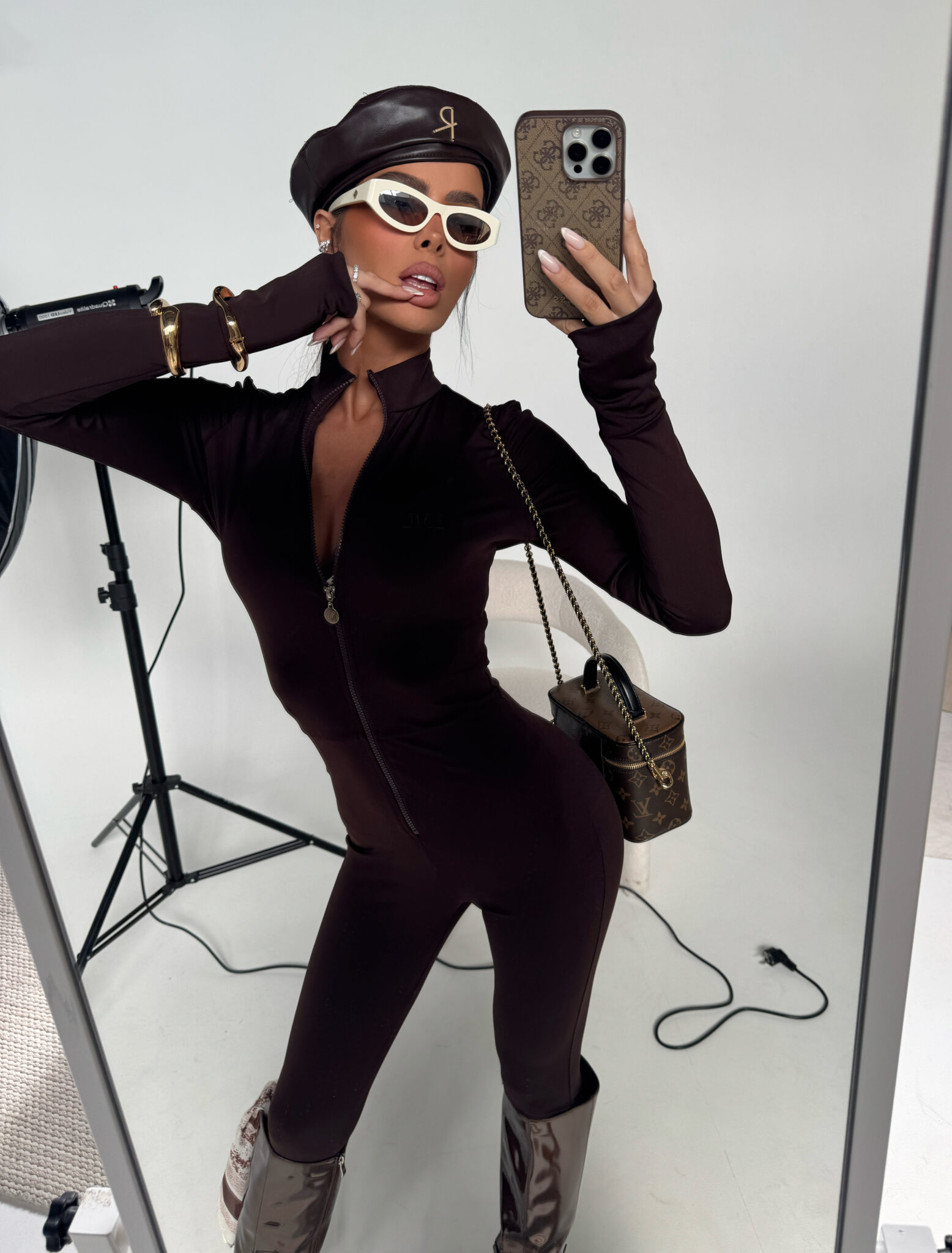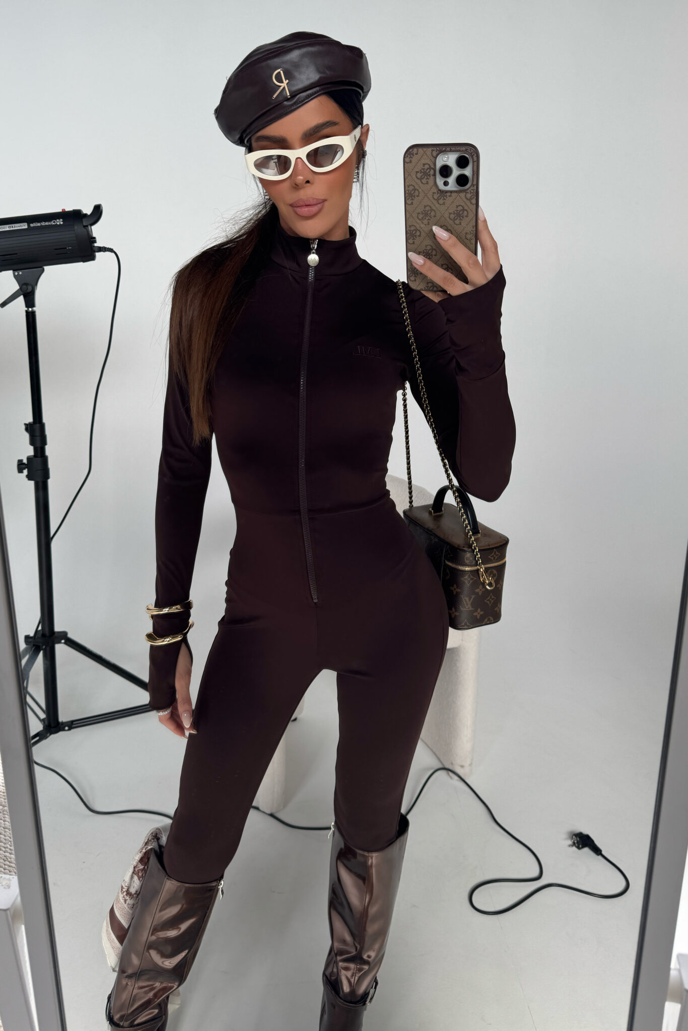 Dopasowany kombinezon z elastycznej lycry, który podkreśla sylwetkę i daje efekt drugiej skóry. Długi rękaw z otworem na kciuk i stójka z przodu nadają mu sportowego sznytu, a zamek na całej długości pozwala regulować dekolt – od zabudowanego aż po głębokie wycięcie. Minimalistyczne logo na piersi haftowane ton w ton. Model idealny solo lub jako baza pod oversize’ową kurtkę czy płaszcz. Wygodny, kobiecy i zaprojektowany tak, by przyciągać spojrzenia.