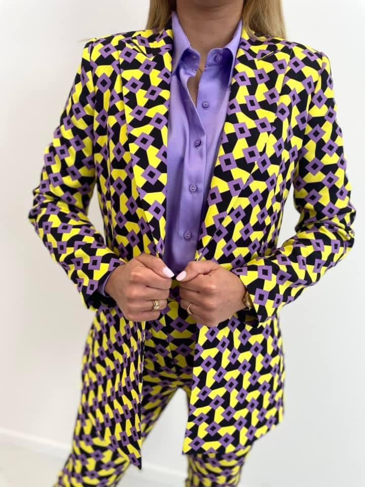 Komplet marynarka+spodnie . Ekskluzywny komplet w skład którego wchodzą elegancki żakiet oraz spodnie wykonane z wysokiej jakości, eleganckiego materiału w oryginalny print.