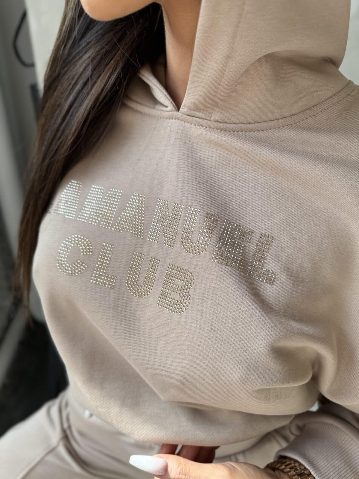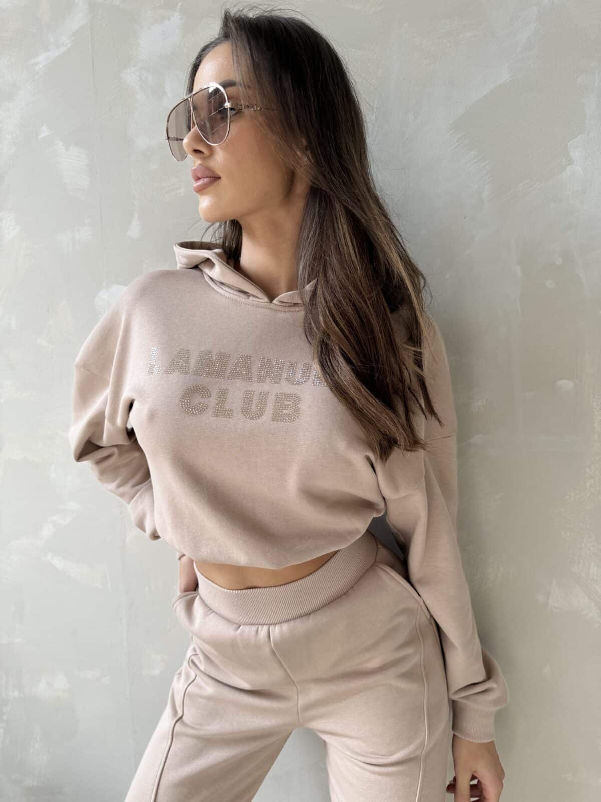 Nasza kolekcja dresowa to synonim komfortu, stylu i luksusu. Ten wyjątkowy komplet damska składa się z bluzy z kapturem zdobionej logo z lśniącymi diamencikami oraz spodni z efektownymi przeszyciami. Bluza z kapturem to nie tylko element garderoby, ale również wyraz elegancji i subtelności. Nasze logo ozdobione błyszczącymi diamencikami nadaje jej wyjątkowego blasku i prestiżu, jednocześnie zachowując swój sportowy charakter. Kaptur dodaje praktyczności i stylu, czyniąc tę bluzę idealnym wyborem na każdą okazję. Spodnie z przeszyciami to doskonałe uzupełnienie tego zestawu. Ich efektowny design nie tylko podkreśla sylwetkę, ale również nadaje całości wyjątkowego charakteru. Made in Poland .