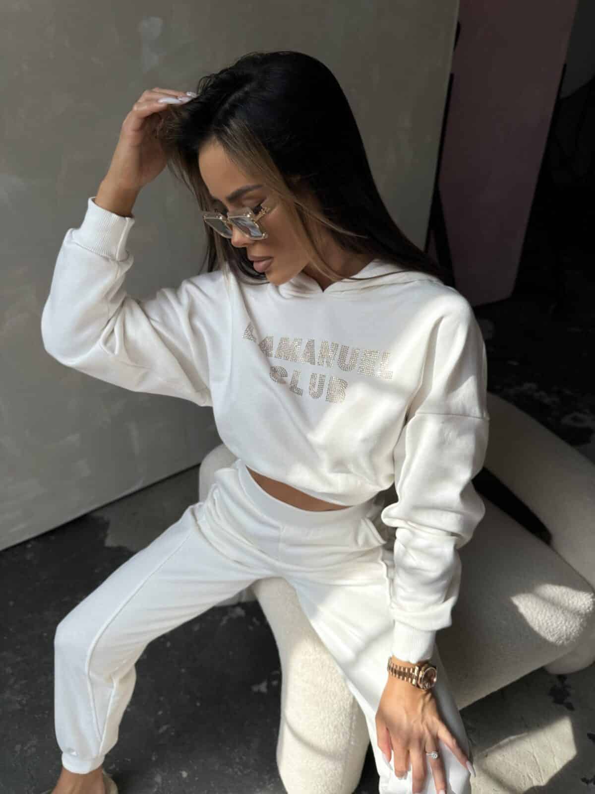 Nasza kolekcja dresowa to synonim komfortu, stylu i luksusu. Ten wyjątkowy komplet damska składa się z bluzy z kapturem zdobionej logo z lśniącymi diamencikami oraz spodni z efektownymi przeszyciami. Bluza z kapturem to nie tylko element garderoby, ale również wyraz elegancji i subtelności. Nasze logo ozdobione błyszczącymi diamencikami nadaje jej wyjątkowego blasku i prestiżu, jednocześnie zachowując swój sportowy charakter. Kaptur dodaje praktyczności i stylu, czyniąc tę bluzę idealnym wyborem na każdą okazję. Spodnie z przeszyciami to doskonałe uzupełnienie tego zestawu. Ich efektowny design nie tylko podkreśla sylwetkę, ale również nadaje całości wyjątkowego charakteru. Made in Poland .