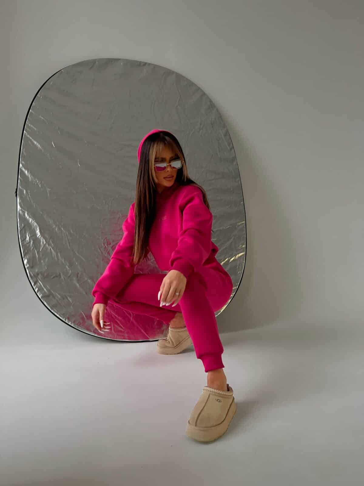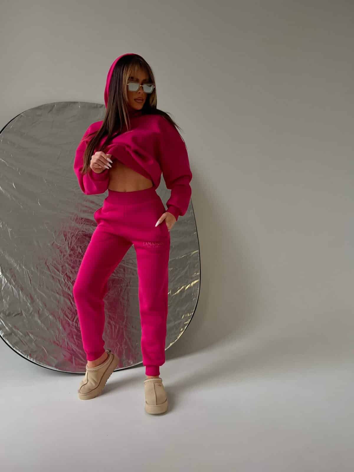 Komplet dresowy wykonany z przyjemnego w dotyku materiału z misiem pod spodem, to zestaw bluzy i spodni, który łączy w sobie casualowy styl i wygodę, tworząc świetny zimowy look. Bluza posiada kaptur oraz logo marki na przodzie. Spodnie z kieszeniami, są równie funkcjonalne, co modne. Elastyczny pas gwarantuje idealne dopasowanie, a kieszenie nadają charakteru, jednocześnie sprawiając, że ten komplet staje się kompletnym wyborem na każdą okazję. Made in Poland .
