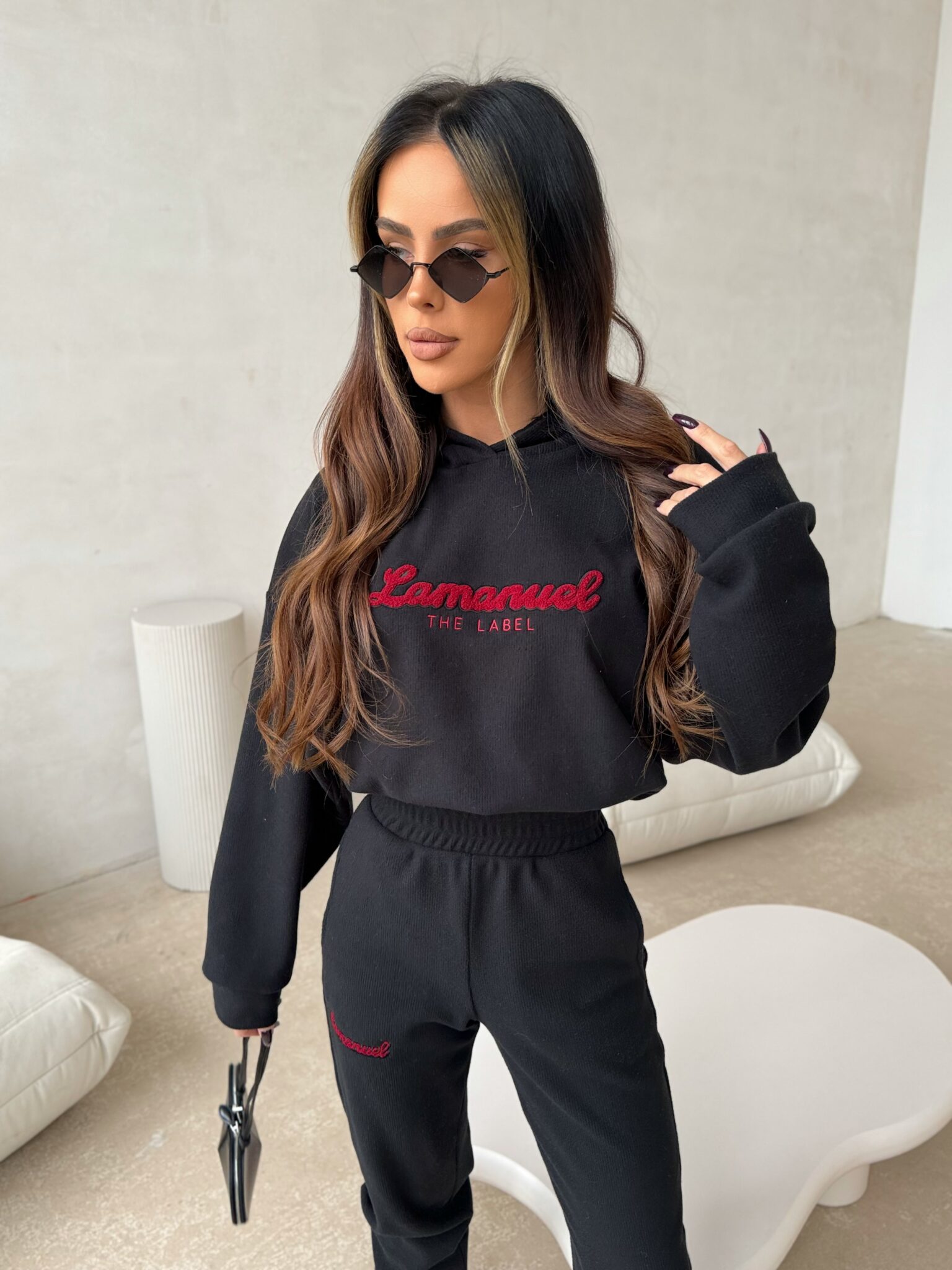Stylowy i niezwykle wygodny damski komplet dresowy to idealny wybór na chłodniejsze dni. Wykonany z miękkiego, puszystego materiału typu “miś”, zapewnia ciepło i komfort na najwyższym poziomie. Bluza z kapturem posiada gumę w talii, która podkreśla sylwetkę, nadając jej kobiecy kształt, a jednocześnie zapewnia wygodę. Na przodzie bluzy znajduje się subtelne logo, które dodaje całości modnego wyrazu. Do kompletu dołączone są spodnie z elastyczną talią i praktycznymi kieszeniami, które sprawdzą się zarówno na spacerze, jak i w domowym zaciszu.