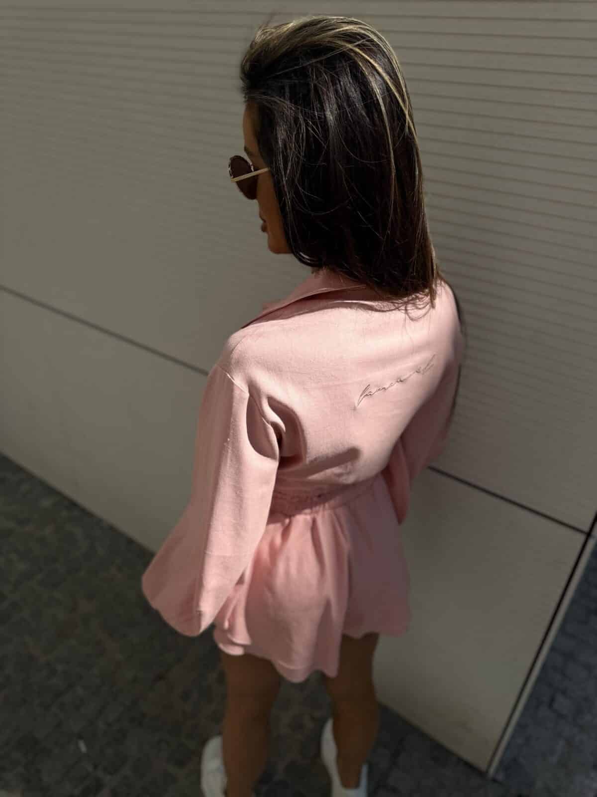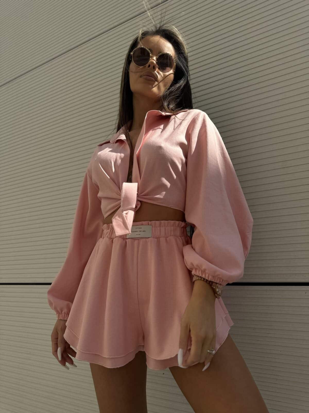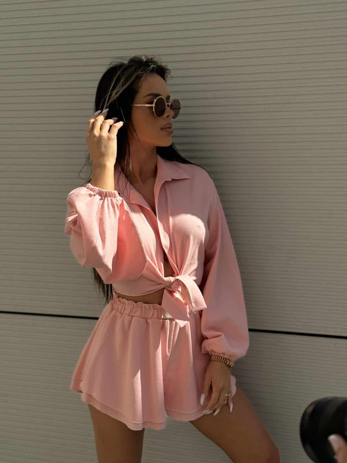 Dwuczęściowy damski komplet to harmonijne połączenie elegancji i komfortu. Koszula z bufiastymi rękawami długimi dodaje stylu i romantycznego uroku, podczas gdy wiązanie w talii podkreśla kobiecą sylwetkę. Wykonana z wysokiej jakości materiałów, gwarantuje wygodę noszenia przez cały dzień. Spodenki uzupełniają całość, tworząc zgraną stylizację idealną na różne okazje. Doskonałe na letnie dni, spotkania ze znajomymi czy wieczorne wyjścia. Ten komplet to nie tylko wybór modowy, ale także praktyczny, który z pewnością przyciągnie spojrzenia i podkreśli indywidualny styl noszącej. Made in Poland .
