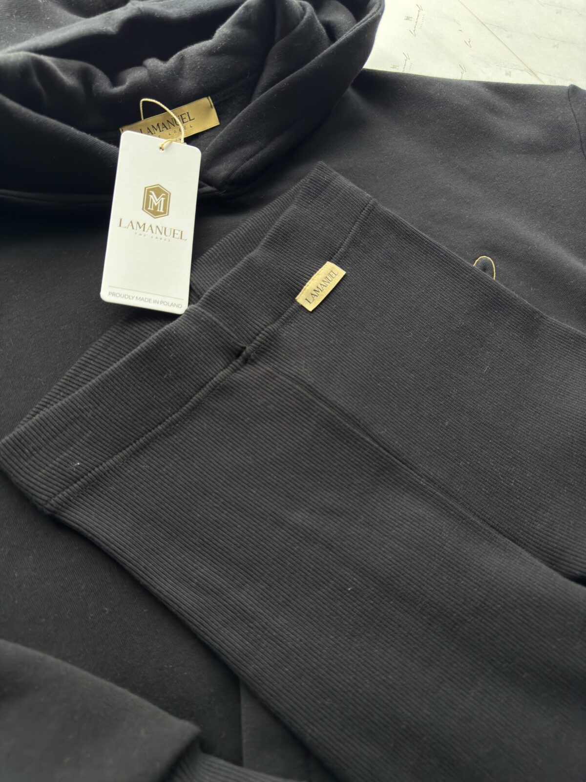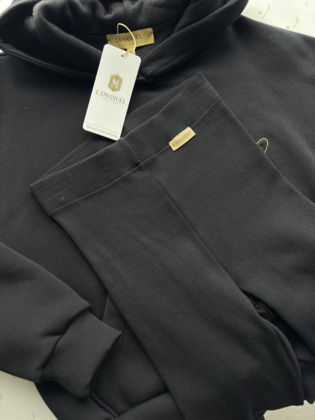 Podkreśl swój indywidualny styl z naszym nowym kompletem damskim! Bluza z kapturem to wyraz swobodnego charakteru. Posiada dużą kieszeń, ozdobne logo na piersi. idealna na chłodniejsze dni. Legginsy z prążkowanego materiału to doskonałe dopełnienie zestawu. Wykonane z elastycznego materiału, dopasowują się do sylwetki, jednocześnie zapewniając wygodę i swobodę ruchu. Ich prążkowany wzór dodaje nuty nowoczesnego minimalizmu. Made in Poland .