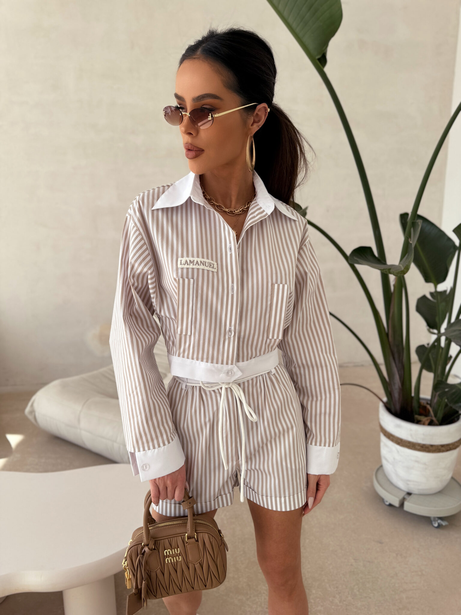 Koszula o koszulowym kroju, zapinana na guziki, z kontrastowym kołnierzykiem oraz mankietami, które nadają jej wyrazistego charakteru. Lekko oversize’owy fason zapewnia swobodę i wygodę noszenia. Dopracowana w detalach, z naszywką z nazwą marki oraz kieszonką na piersi. W połączeniu z krótkimi spodenkami tworzy elegancki, a jednocześnie nonszalancki look.