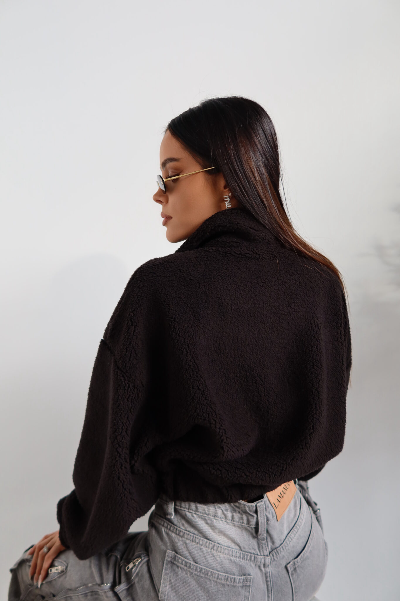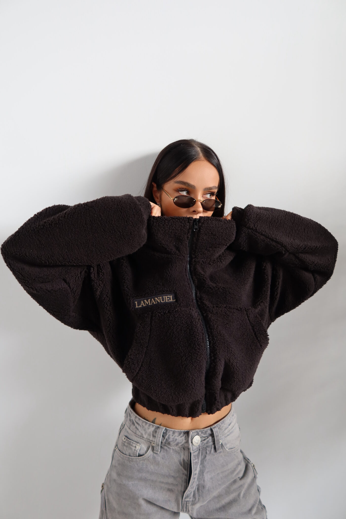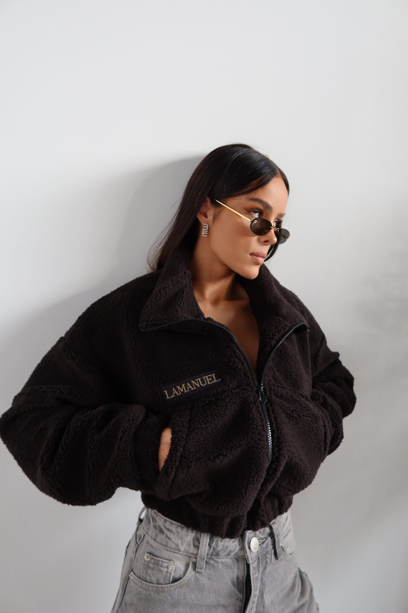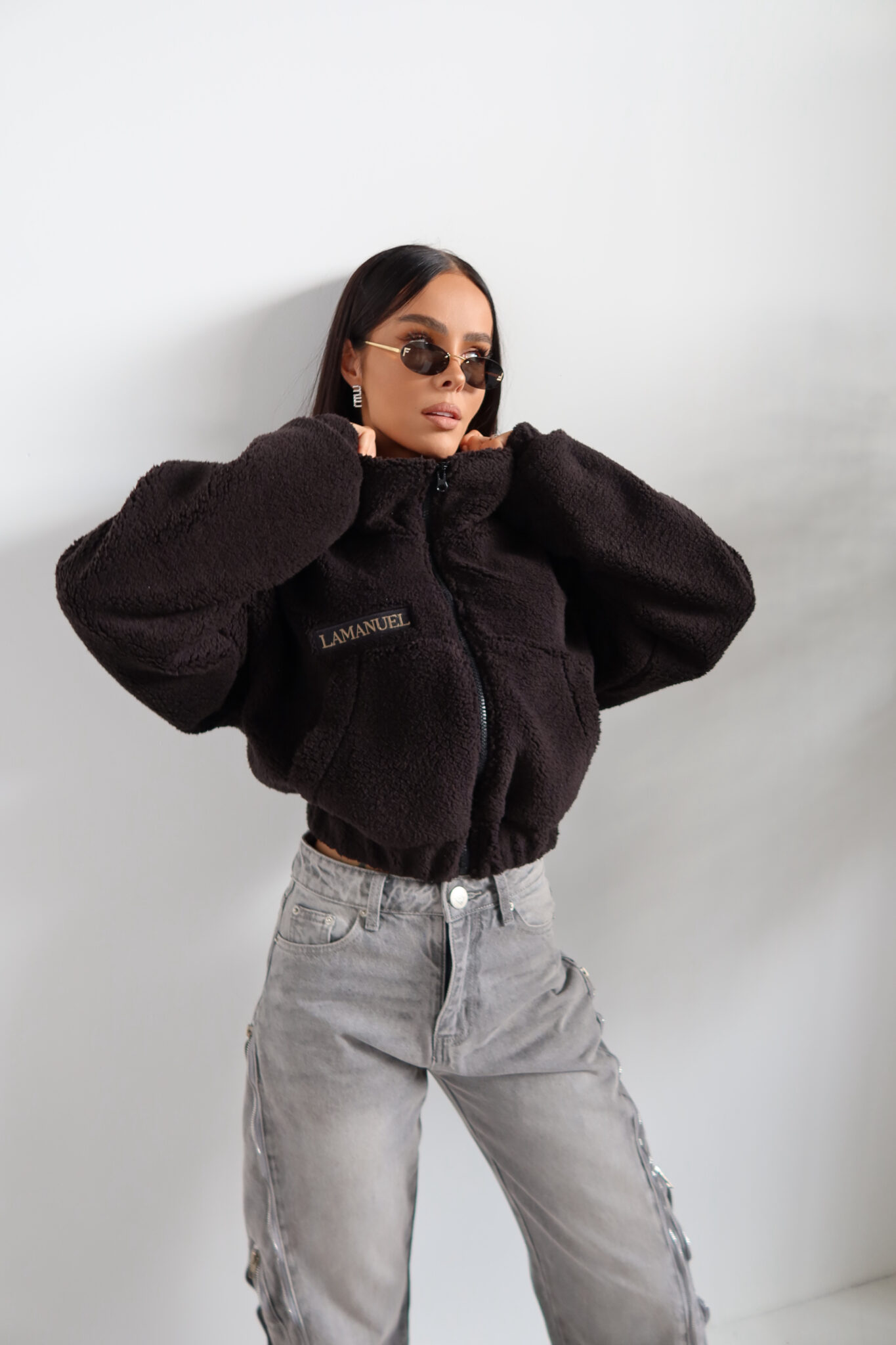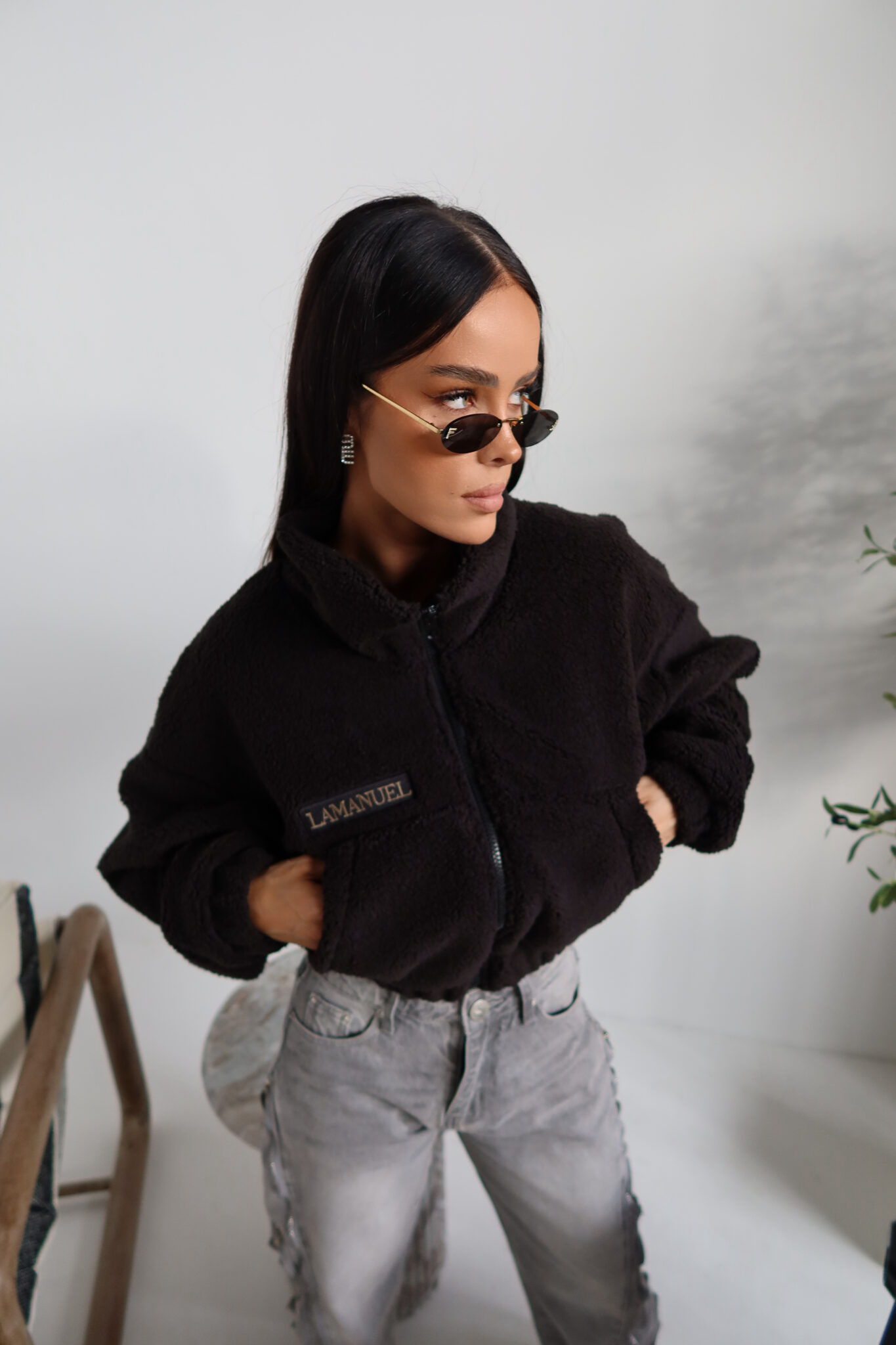 Kurtka z miękkiego, przytulnego futerka z podszewką od wewnątrz. Krótki, lekko oversize’owy fason z wysoką stójką, kieszeniami z klapką i zamkiem na całej długości. Na piersi naszywka z logo. Ciepła i stylowa propozycja na chłodniejsze dni.