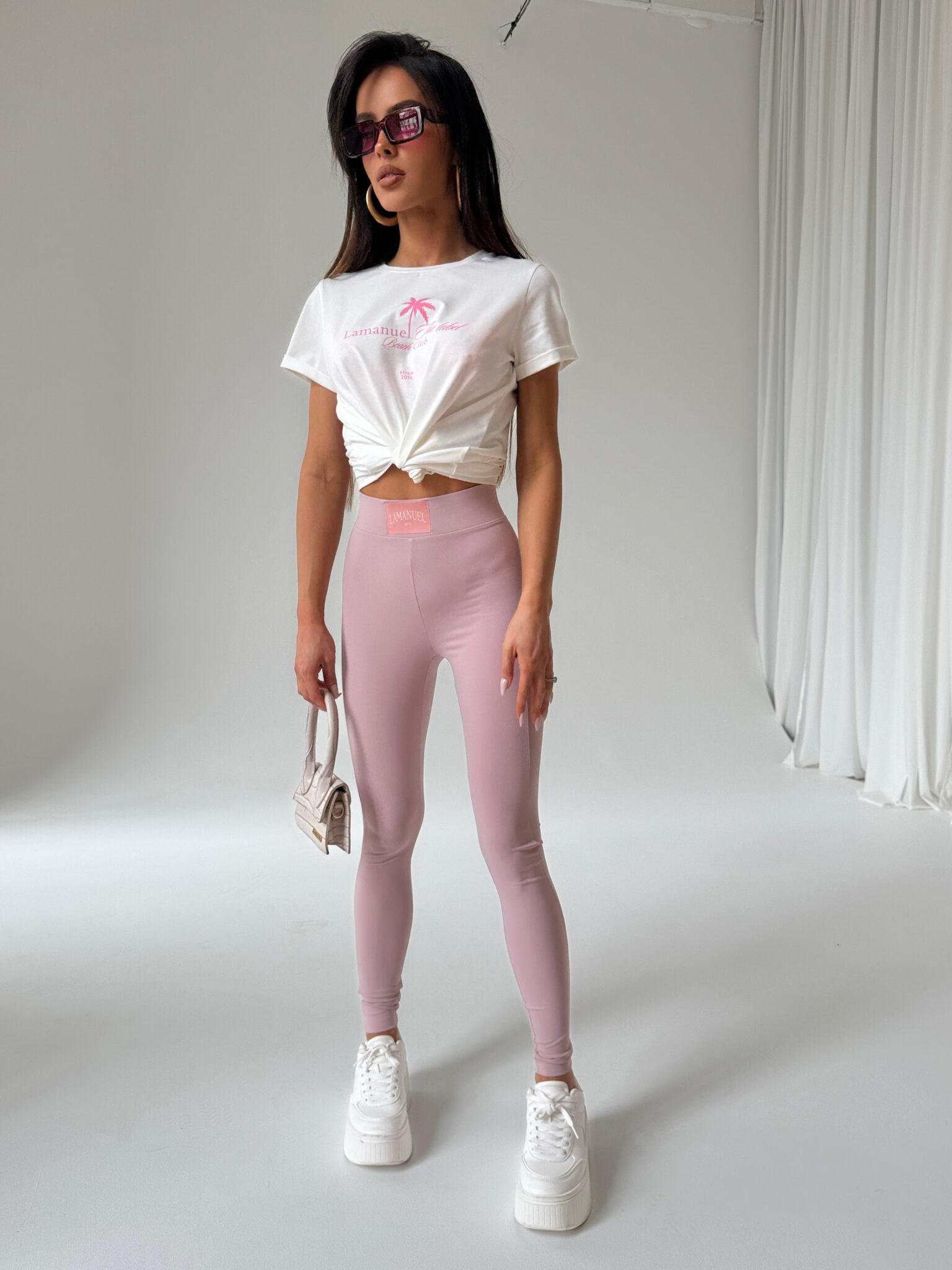 Podkreśl swoją sylwetkę dzięki legginsom z lekkiej lycry, które łączą wygodę i styl. Wykonane z elastycznego materiału, idealnie dopasowują się do ciała, zapewniając pełną swobodę ruchu. Na przodzie znajduje się subtelne, haftowane logo, które dodaje elegancji i wyróżnia te legginsy na tle innych. Unikalne przeszycia na tylnej części legginsów zostały zaprojektowane tak, aby podkreślić kształt pośladków i zapewnić efekt modelowania.