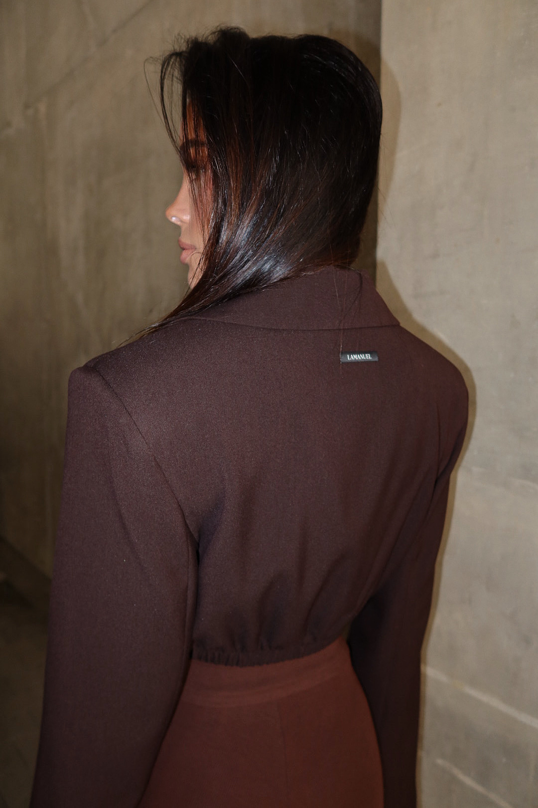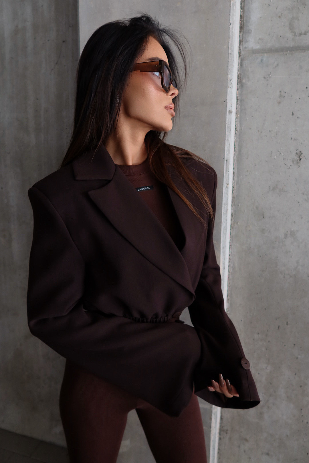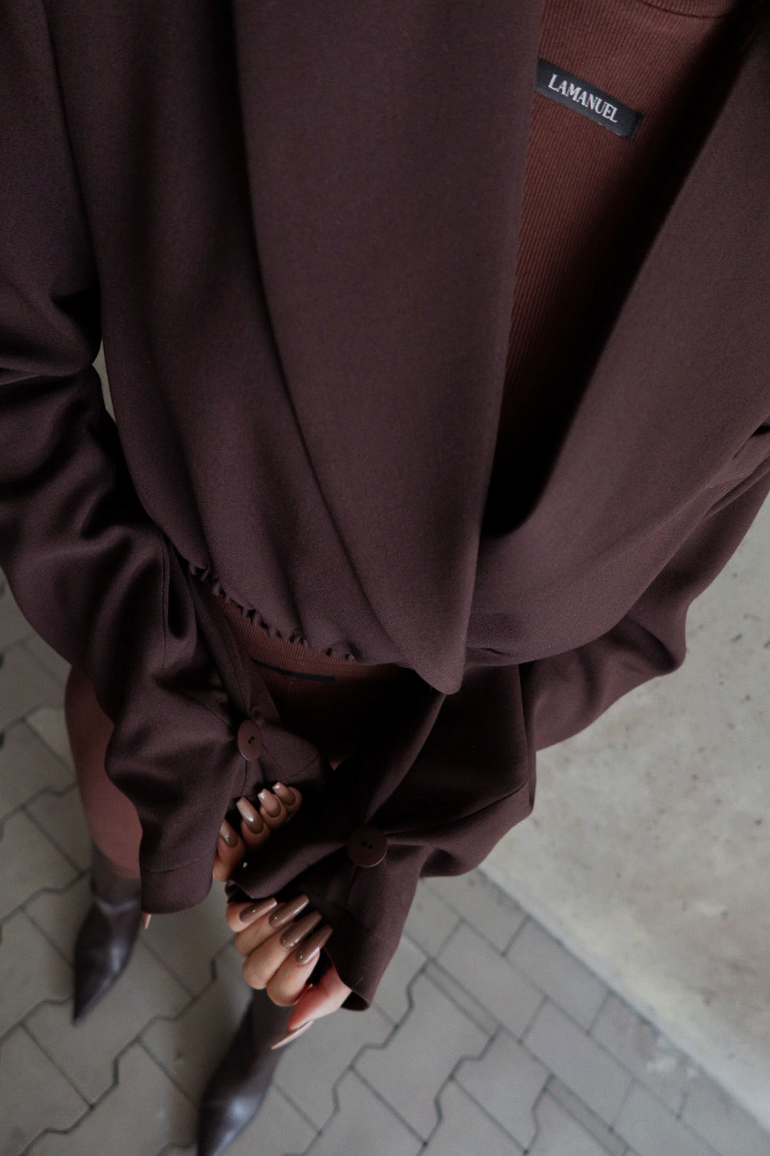 Ta marynarka robi całą stylówkę. Oversize’owy krój w wersji cropped i taliowanie gumką dają idealny balans między elegancją a streetem. Ale to rękawy są tu gwiazdą – szerokie, zapięciem na guziki. Możesz spiąć je od góry, od dołu albo zostawić luźno – za każdym razem dają zupełnie inny efekt.