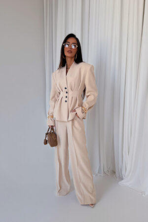 Krótka marynarka o nowoczesnym kroju z wbudowanymi poduszkami na ramionach podkreśla sylwetkę i dodaje wyrazistości stylizacji. Idealnie łączy elegancję z modowym charakterem, sprawdzając się zarówno na co dzień, jak i na wieczorne wyjścia. Produkt premium .