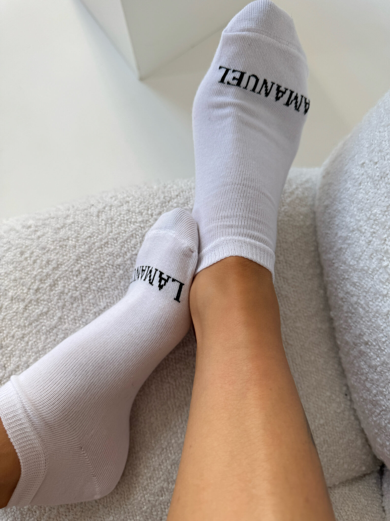 Krótkie skarpety wykonane z miękkiego i elastycznego materiału, który dopasowuje się do kształtu stopy. Posiadają nadruk z nazwą marki umieszczony na górnej części palców, co nadaje im minimalistyczny, ale stylowy wygląd. Elastyczny ściągacz przy kostce zapewnia komfort noszenia i zapobiega zsuwaniu się skarpet. Idealne do codziennych stylizacji oraz jako dodatek do sportowego lub casualowego obuwia.