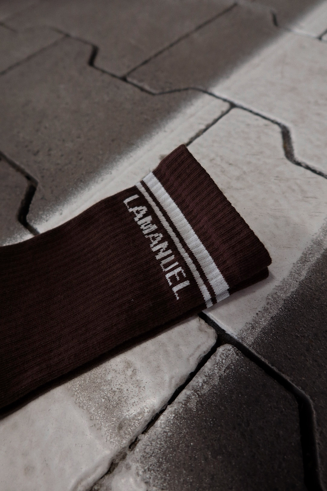 Sportowy vibe w miejskim wydaniu. Klasyczne, prążkowane skarpety z logo LA MANUEL, które idealnie dopełnią look ze sneakersami, workerami albo klapkami. Must-have dla fanek stylu streetwearowego i detali z charakterem.