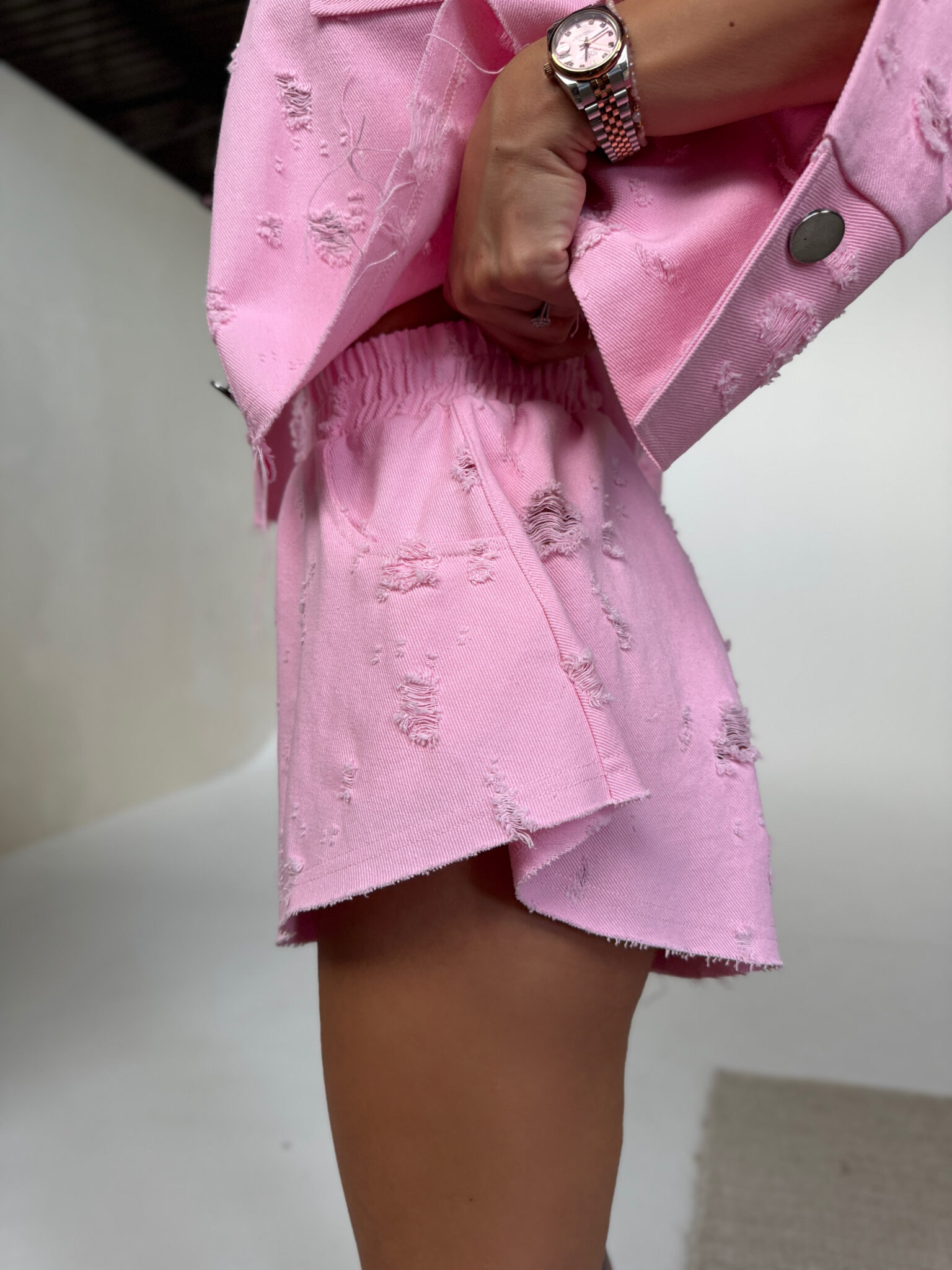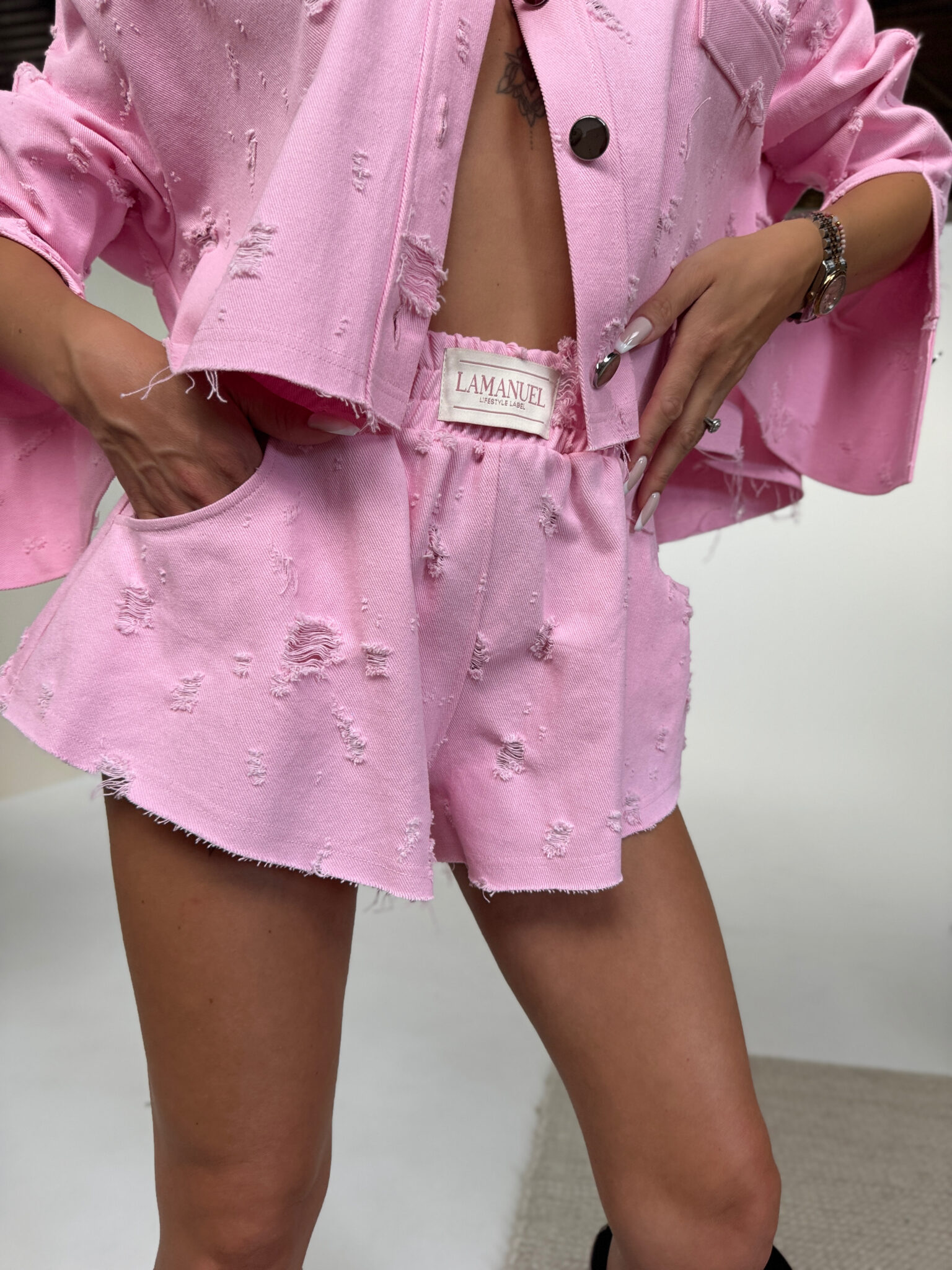 Casualowe szorty z elastycznym pasem, które łączą wygodę z wyrazistym charakterem. Wykonane z miękkiego, ale trwałego denimu z nieregularnymi przetarciami i postarzanym wykończeniem. Surowo cięty dół dodaje lekkości i swobody, a tylna naszywka z logo LAMANUEL podkreśla ich charakter premium. Idealne do letnich stylizacji – zarówno solo, jak i jako część zestawu z kurtką z tej samej tkaniny.