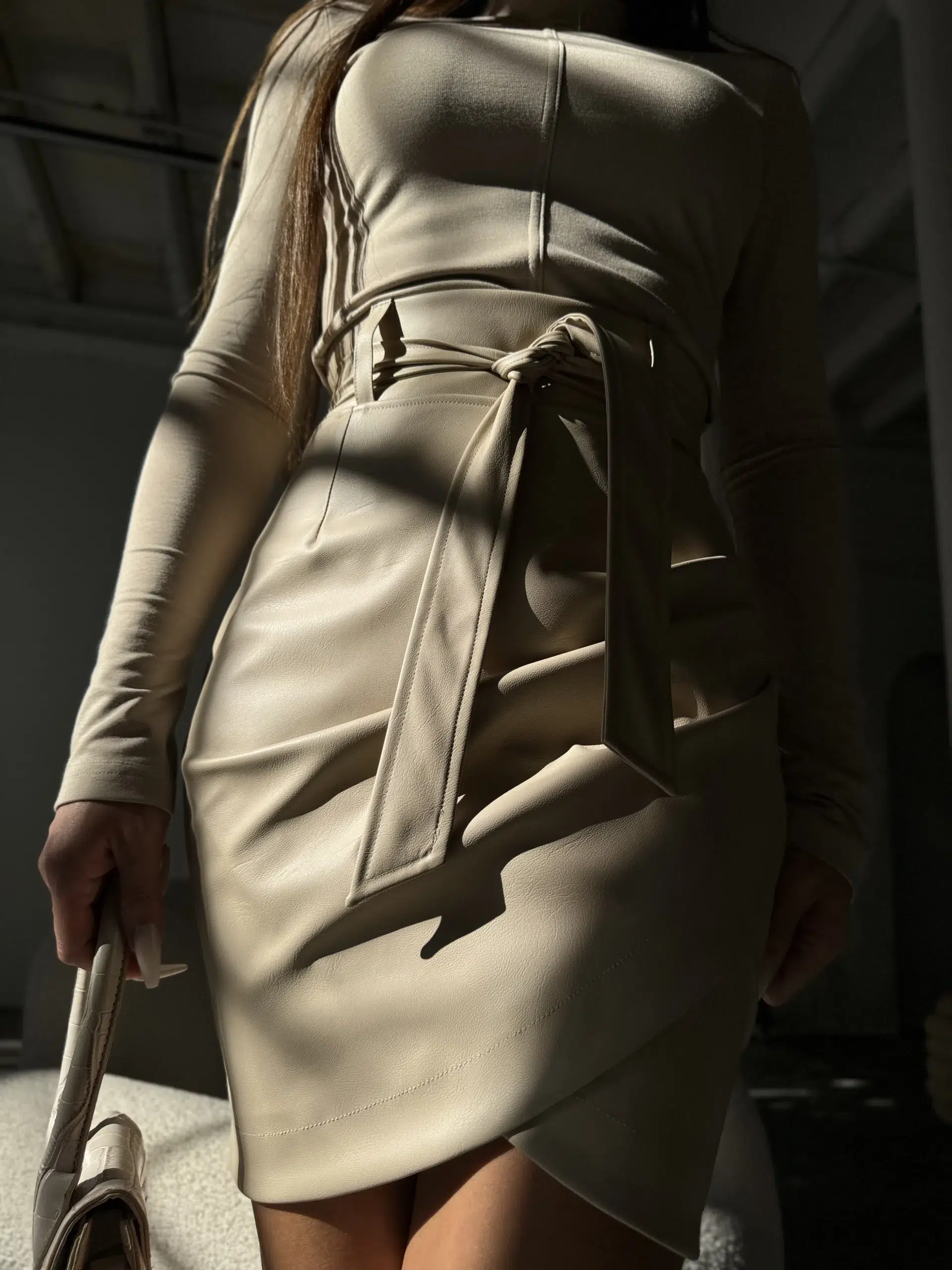 Spódnica z eko skóry o kopertowym kroju midi to elegancki wybór z nutą nowoczesności. Wykonana z wysokiej jakości skóry ekologicznej, zachwyca swoim wyrafinowanym wyglądem. Pasek dodaje wyrazistości i podkreśla talię, a kopertowy krój zapewnia efektowne ułożenie materiału. Idealna zarówno do formalnych, jak i casualowych stylizacji, łączy w sobie modę i funkcjonalność.