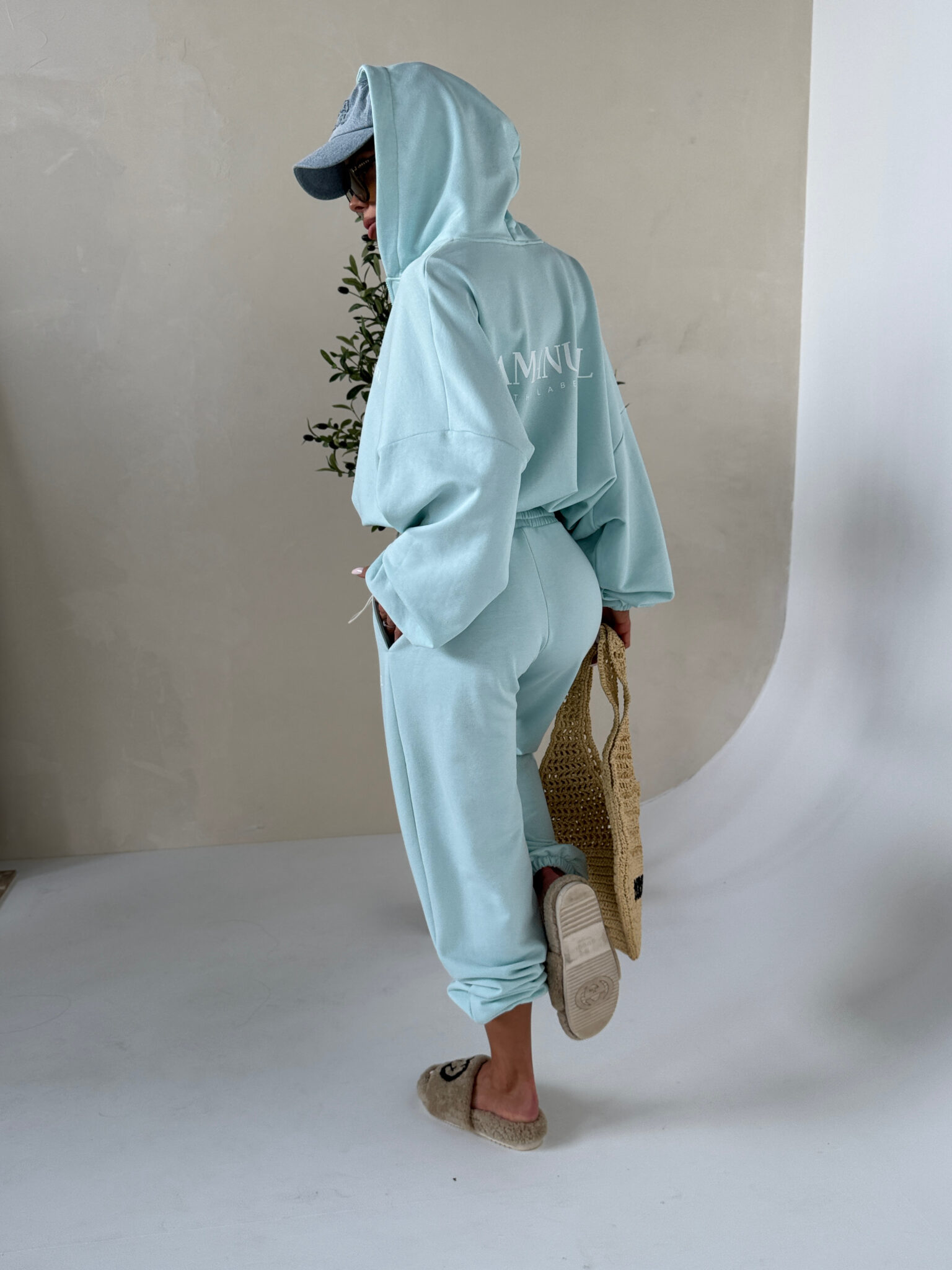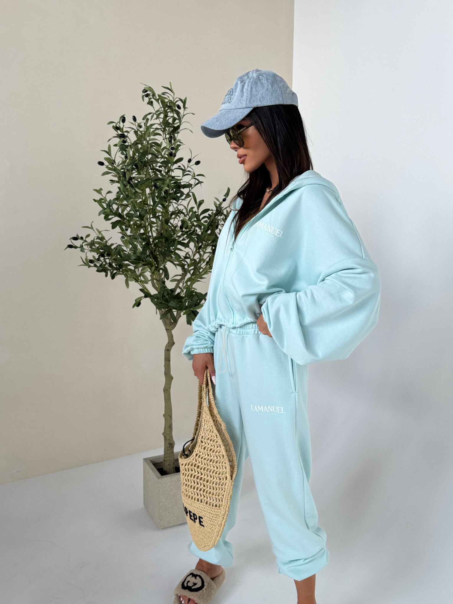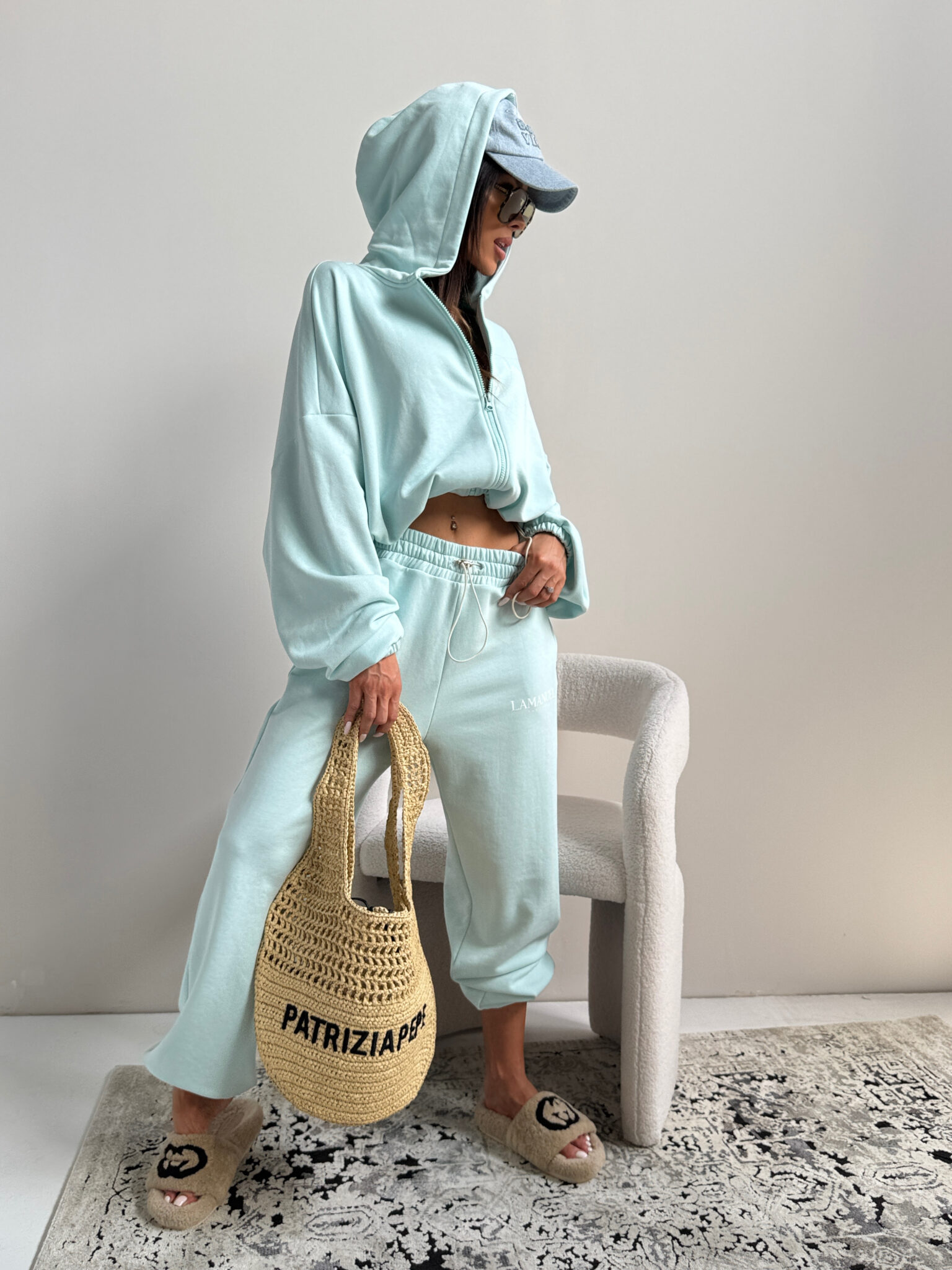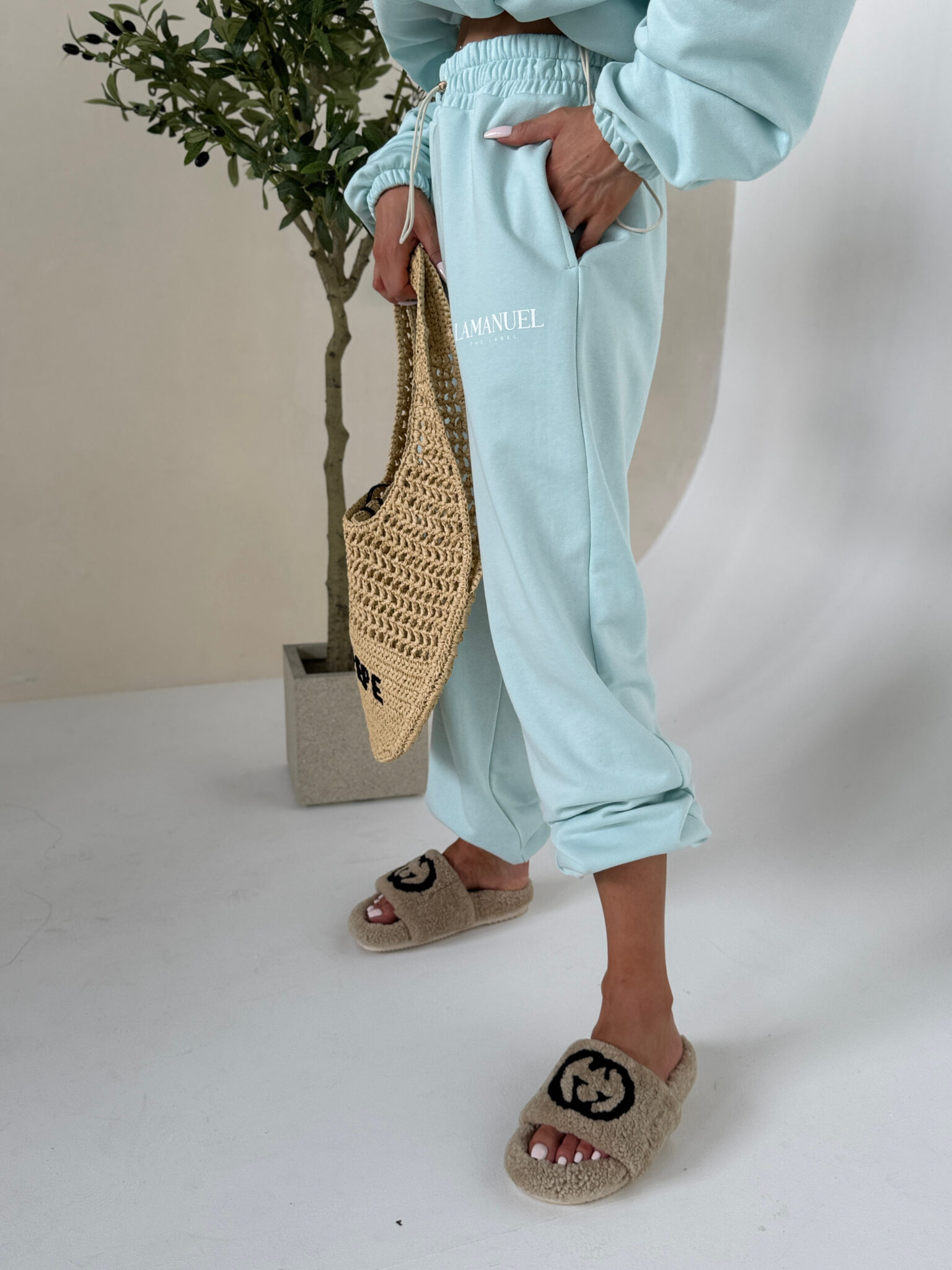 Szerokie spodnie dresowe, stylizowane na męskie z wysokim stanem i elastyczną gumką w pasie oraz dodatkowym troczkiem do regulacji. Szeroka, prosta nogawka i wygodny krój zapewniają komfort noszenia i swobodę ruchów. Na biodrze widoczne logo LAMANUEL, które spójnie komponuje się z bluza CLOUDY. tworząc kompletny, modny zestaw. Spodnie mimo, że są szerokie pasują idealnie od rozmiaru XS-L.