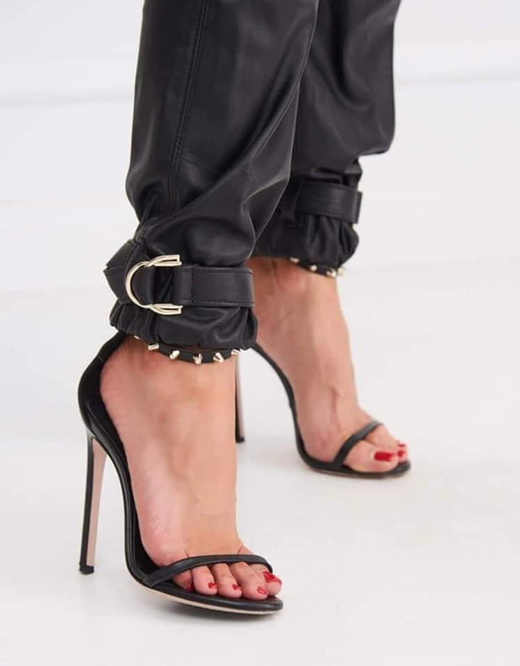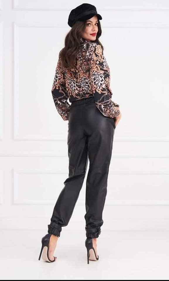 Kobiece, czarne spodnie Lara, wykonane z woskowanego materiału wysokiej jakości. Po boku znajdują się praktyczne kieszenie. Dodatkowym atutem jest ozdobna klamra na pasku i przy nogawkach. Świetnie sprawdzą się jako uzupełnienie wielu stylizacji. Made in Poland.