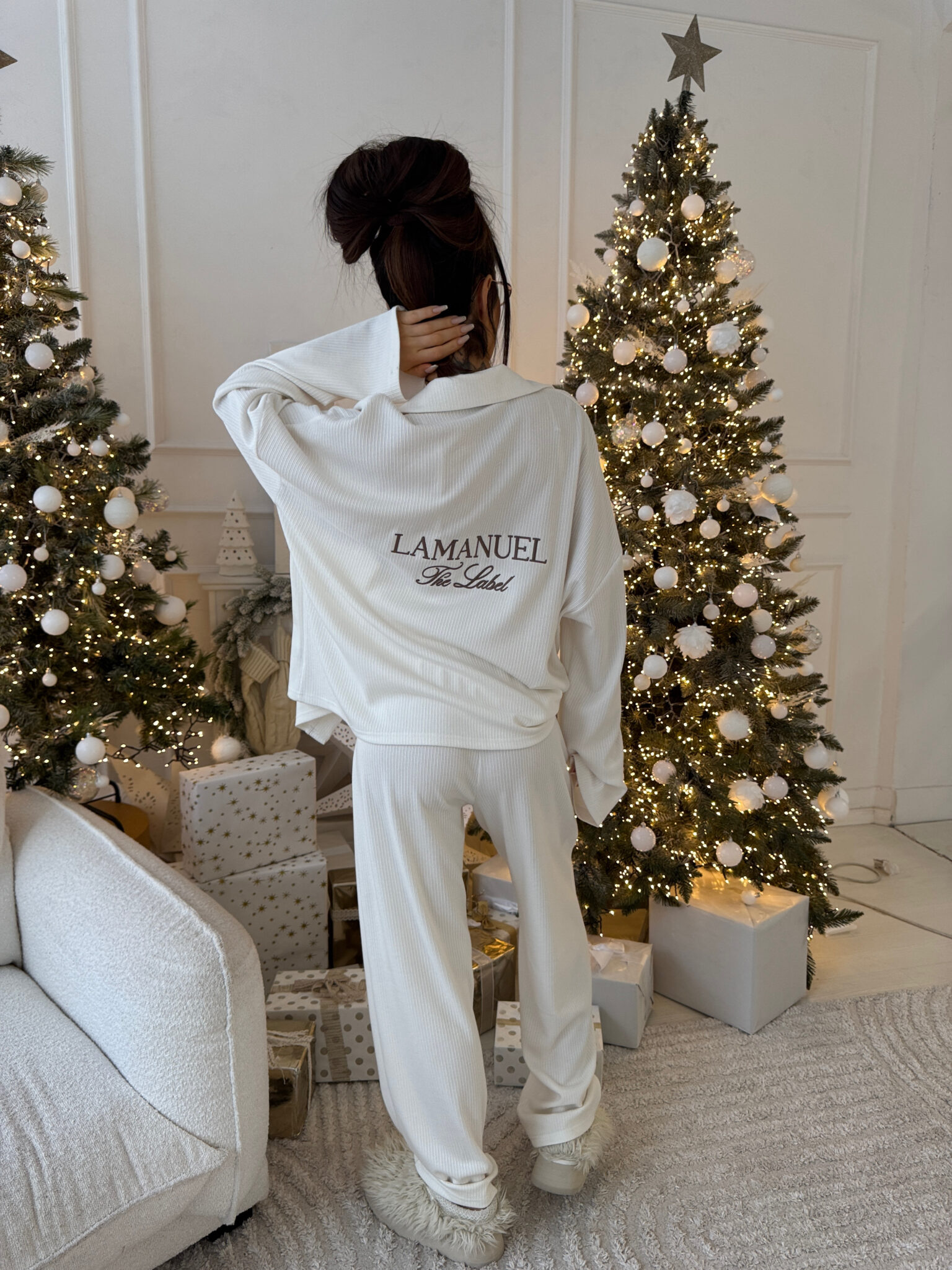 Swobodne, prążkowane spodnie LAMANUEL to must-have sezonu – miękkie, elastyczne i stylowe. Ich casualowy krój idealnie balansuje między domowym komfortem a miejskim lookiem. W zestawie z koszulo-bluzą tworzą komplet, który można nosić jak luksusową piżamę lub codzienny uniform – do sneakersów, płaszcza, swetra. Komfort nie musi być nudny – z LAMANUEL staje się elementem stylu.