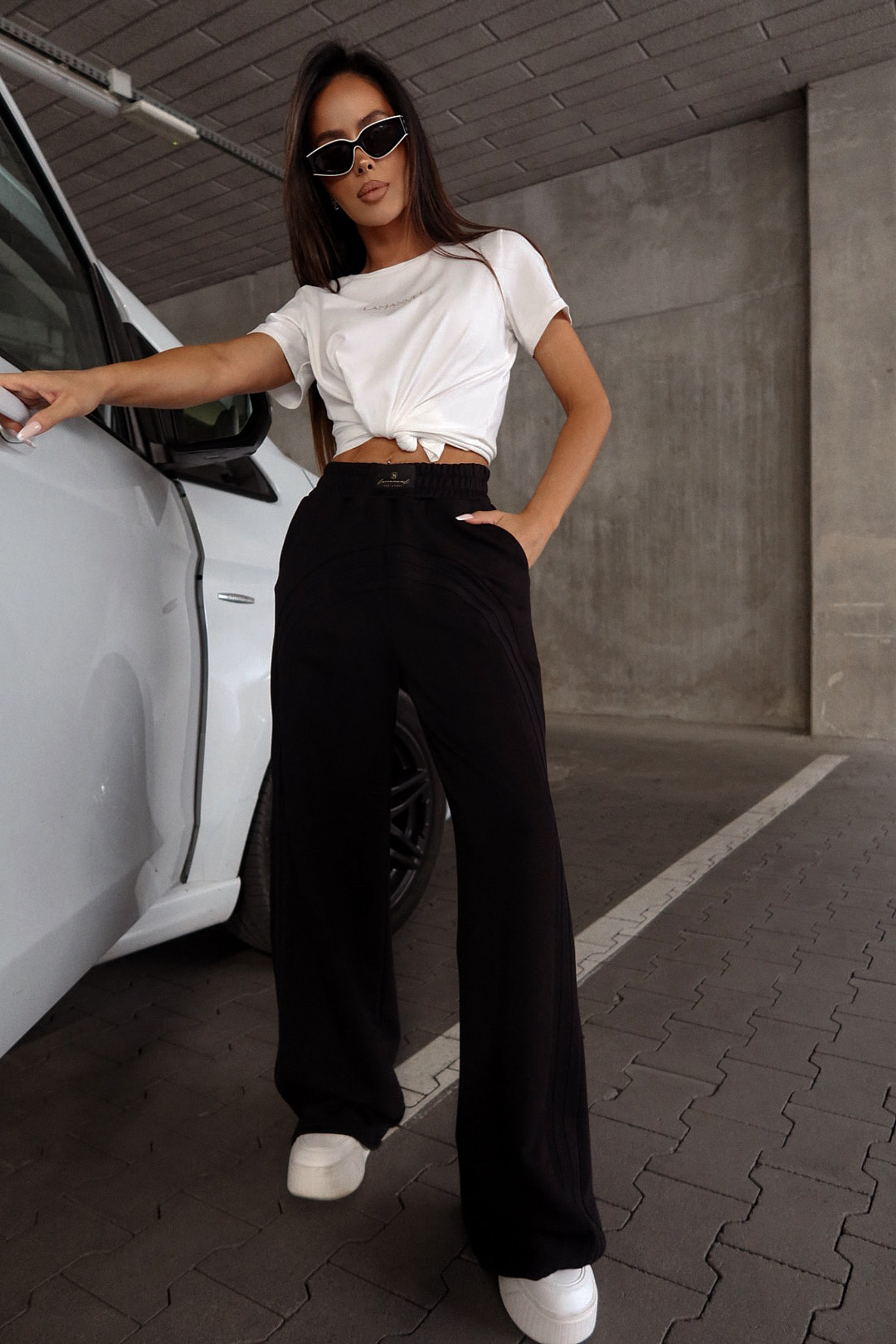 Dresowe spodnie o luźnym, prostym kroju wykonane z grubszej, mięsistej bawełny drapanej od wewnątrz. Charakterystyczne, profilowane przeszycia z przodu i z tyłu nadają formę oraz wyróżniają model na tle klasycznych fasonów. Szerokie lampasy z kontrastowymi pasami optycznie wydłużają sylwetkę. Elastyczna guma w pasie zapewnia wygodne dopasowanie, a naszywka z logo z przodu podkreśla streetwearowy charakter spodni. Model łączy wygodę z mocnym wizualnym akcentem — idealny do stylizacji casualowych i sportowych.