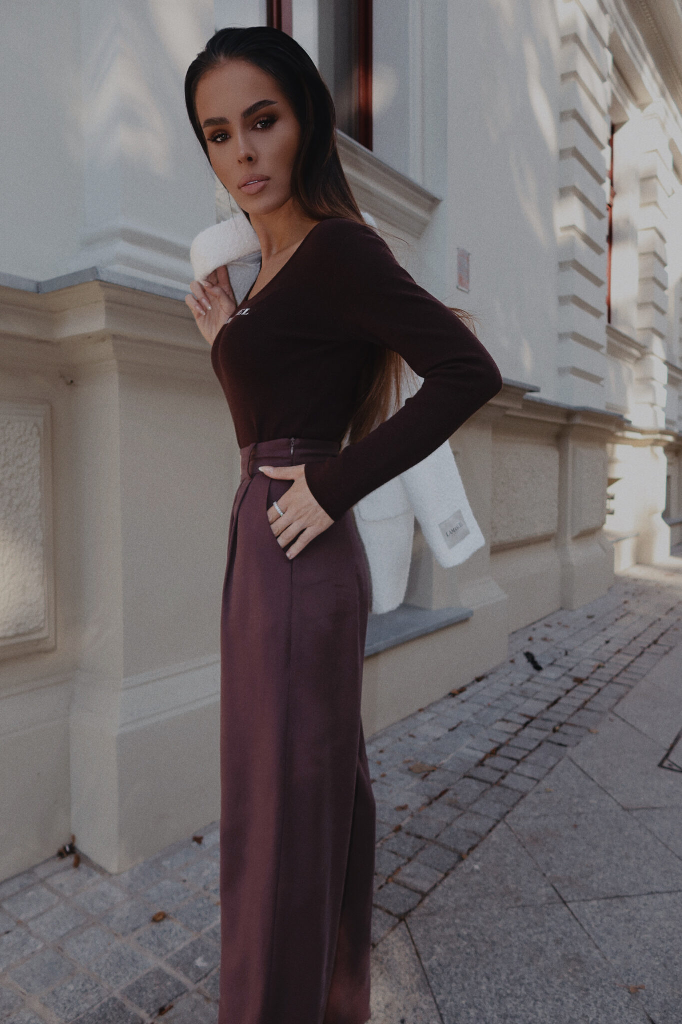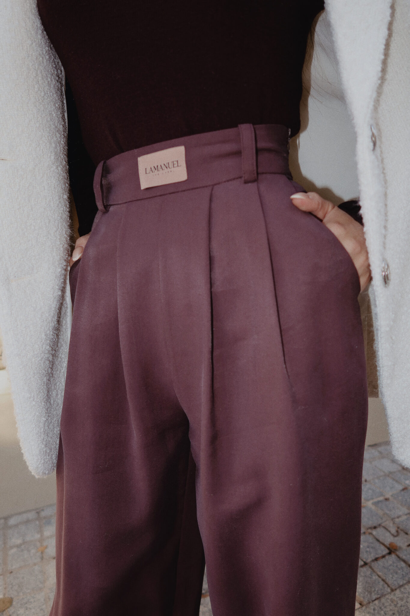 Elegancki fason z charakterem – szeroka nogawka, lekki połysk i zapinanie na suwak z boku, które podkreśla czystą linię talii. Plisy z przodu dodają im wyrafinowania, a dopracowana forma sprawia, że układają się idealnie w ruchu. To spodnie, które robią robotę w total looku, ale równie dobrze zagrają z basicowym topem czy grubym swetrem. Styl biurowy, wieczorowy albo casual w wersji premium – Ty decydujesz.