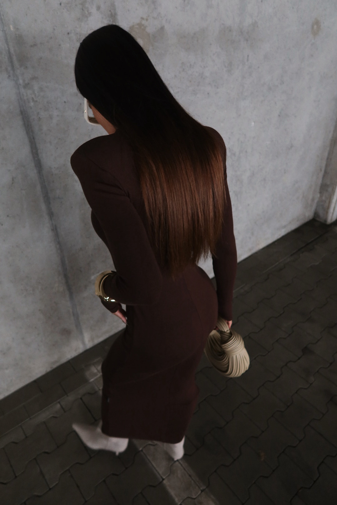 To nie jest zwykła sukienka z prążka – to totalnie inny level. Mięsisty, superelastyczny materiał rozciąga się niesamowicie, dopasowując się do każdej sylwetki. XS zakłada spokojnie nawet rozmiar L. A co najlepsze? Prążek wraca idealnie na swoje miejsce, nic się nie wypycha, nic nie odstaje. Do tego mocna linia ramion dzięki wszytym poduszkom – efekt wow gwarantowany. Kobieca, wyrazista i maksymalnie wygodna.