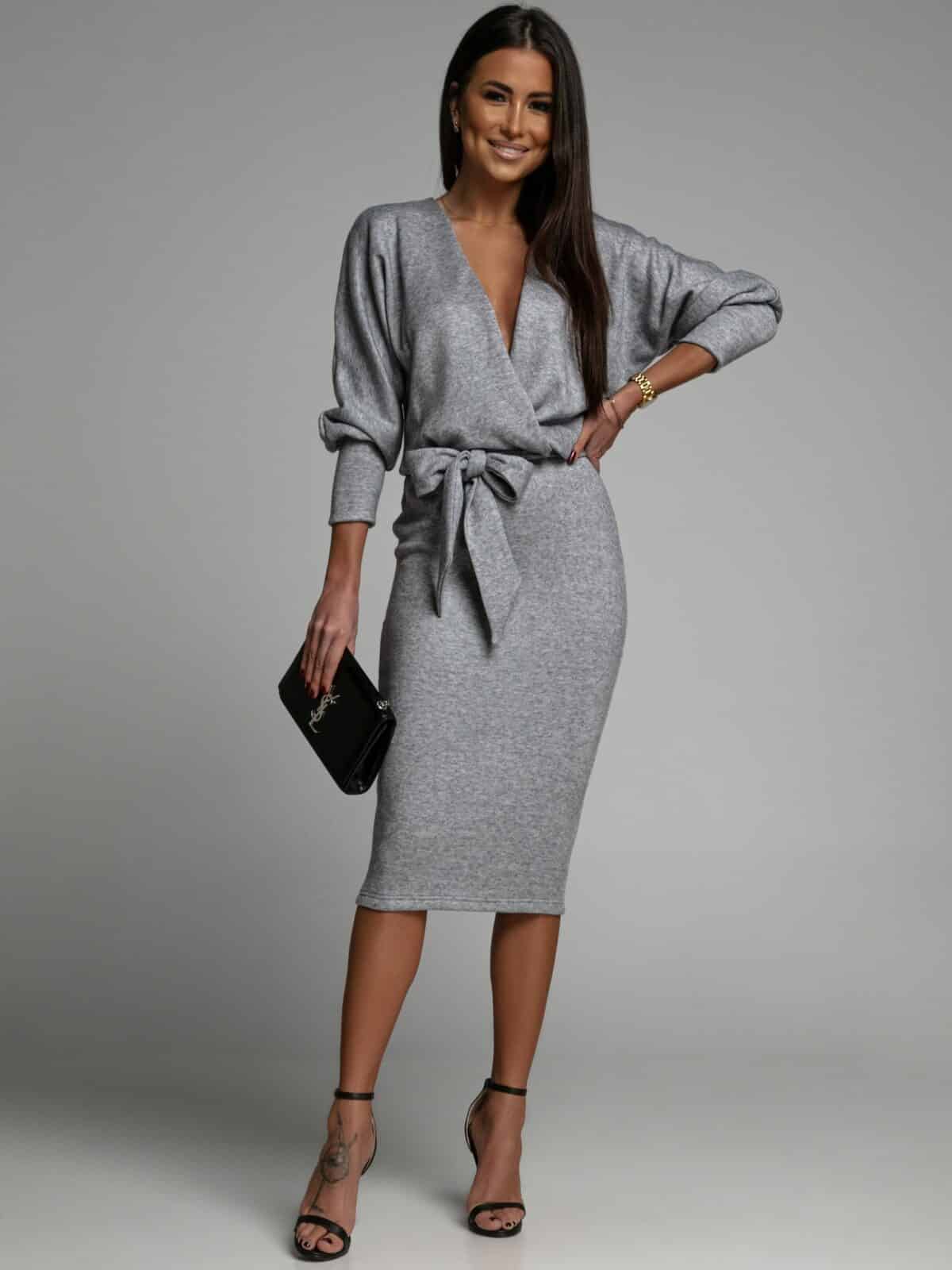 Elegancka, dzianinowa sukienka Dira, wykonana z wysokiej jakości materiału. U góry znajduje się kobiecy w dekolt. Dodatkowym atutem jest dopasowany, taliowany dół. Dodatkowym atutem jest materiałowy pasek w komplecie. Made in Poland.